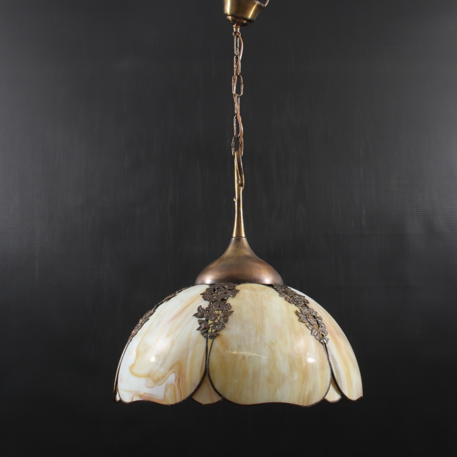 Infattat glas, höjd med kedja 90 cm, diameter 51 cm. (vån1)