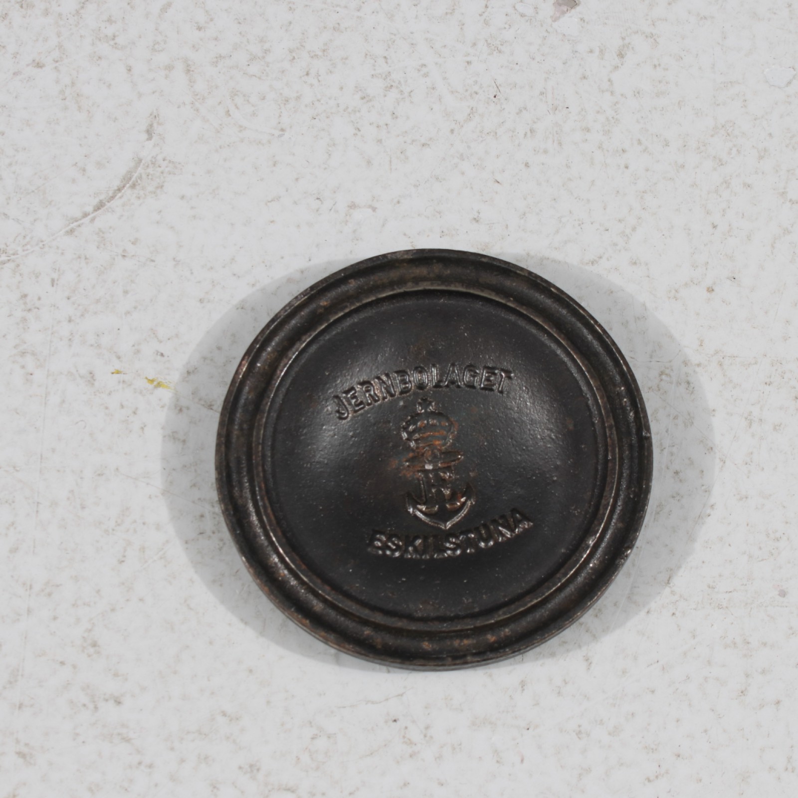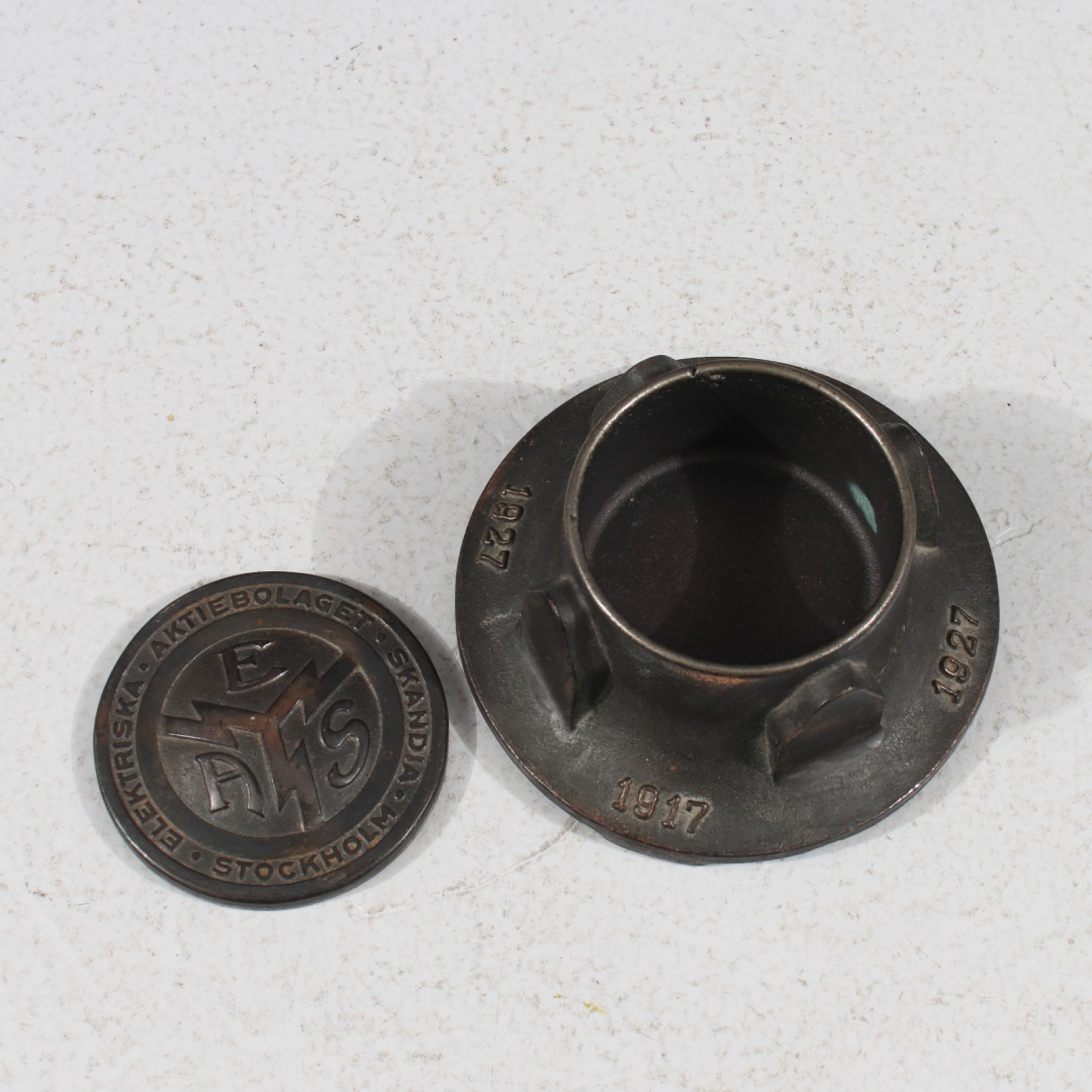 ASK MED LOCK Tillverkad av Jernbolaget, Eskilstuna, text "Elektriska Akteibolaget Skandia, Stockholm 1917-1927", järn, höjd 6 cm. (vån3) Avslutas 2025-10-05 18:08:00
