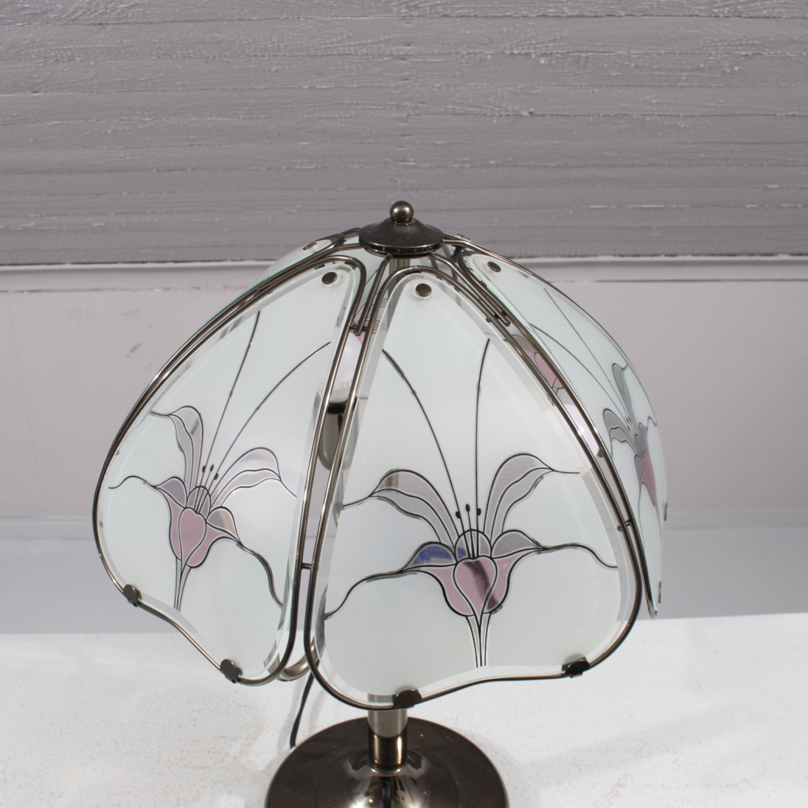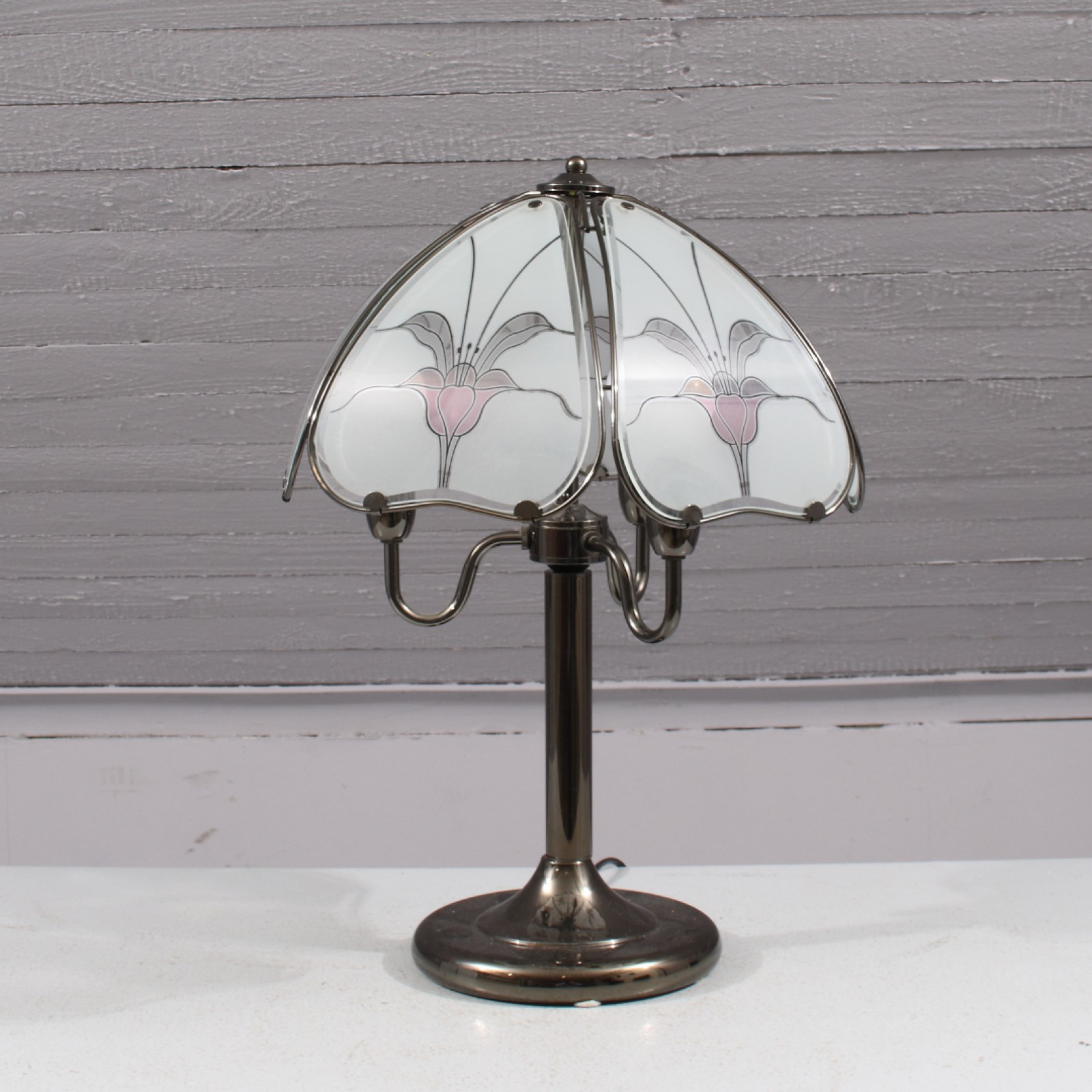 BORDSLAMPA Stomme i metall, skärm med glasskivor, 1980,90-tal, höjd 52 cm. (vån3) Avslutas 2025-11-02 18:18:00