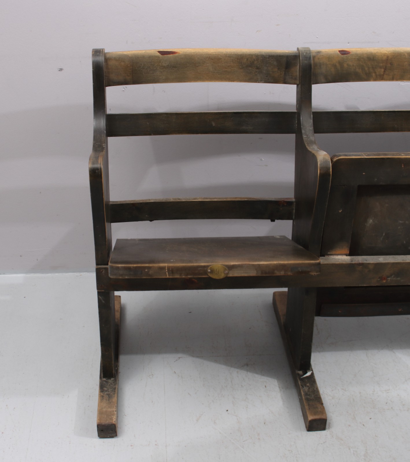 ÄLDRE BIO/TEATERBÄNK 1900-talets första hälft, åldersrelaterat slitage, Rh.77, B.200, Sh.43 cm. (vån1) Avslutas 2025-11-02 18:11:00