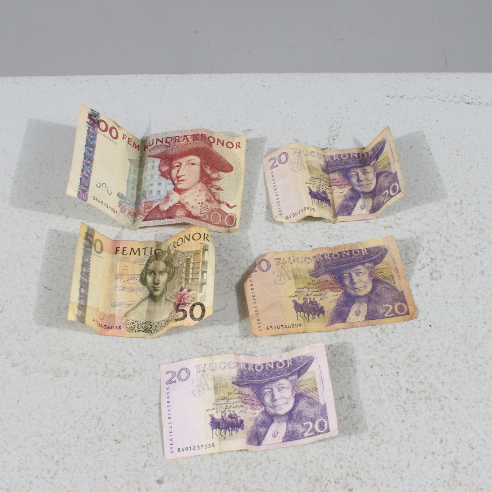 5 stycken, 3st 20 kr, 1st 50 kr samt 1st 500 kr. (vån3)