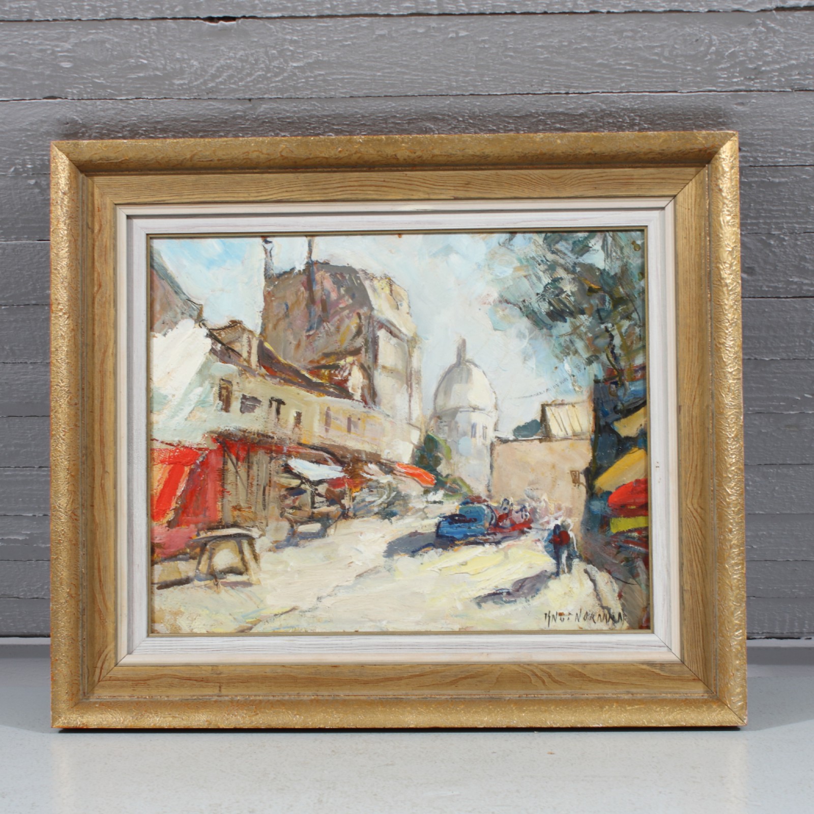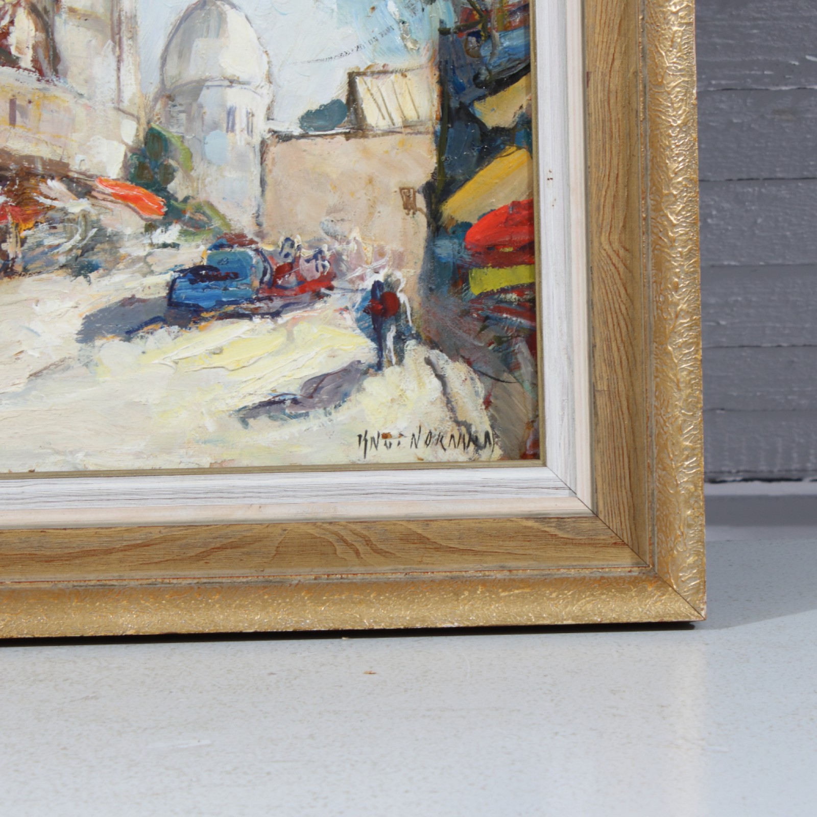 Olja på pannå, "Stadsbild", ram 46,5x54,5 cm, bild 32x40 cm. (vån3)