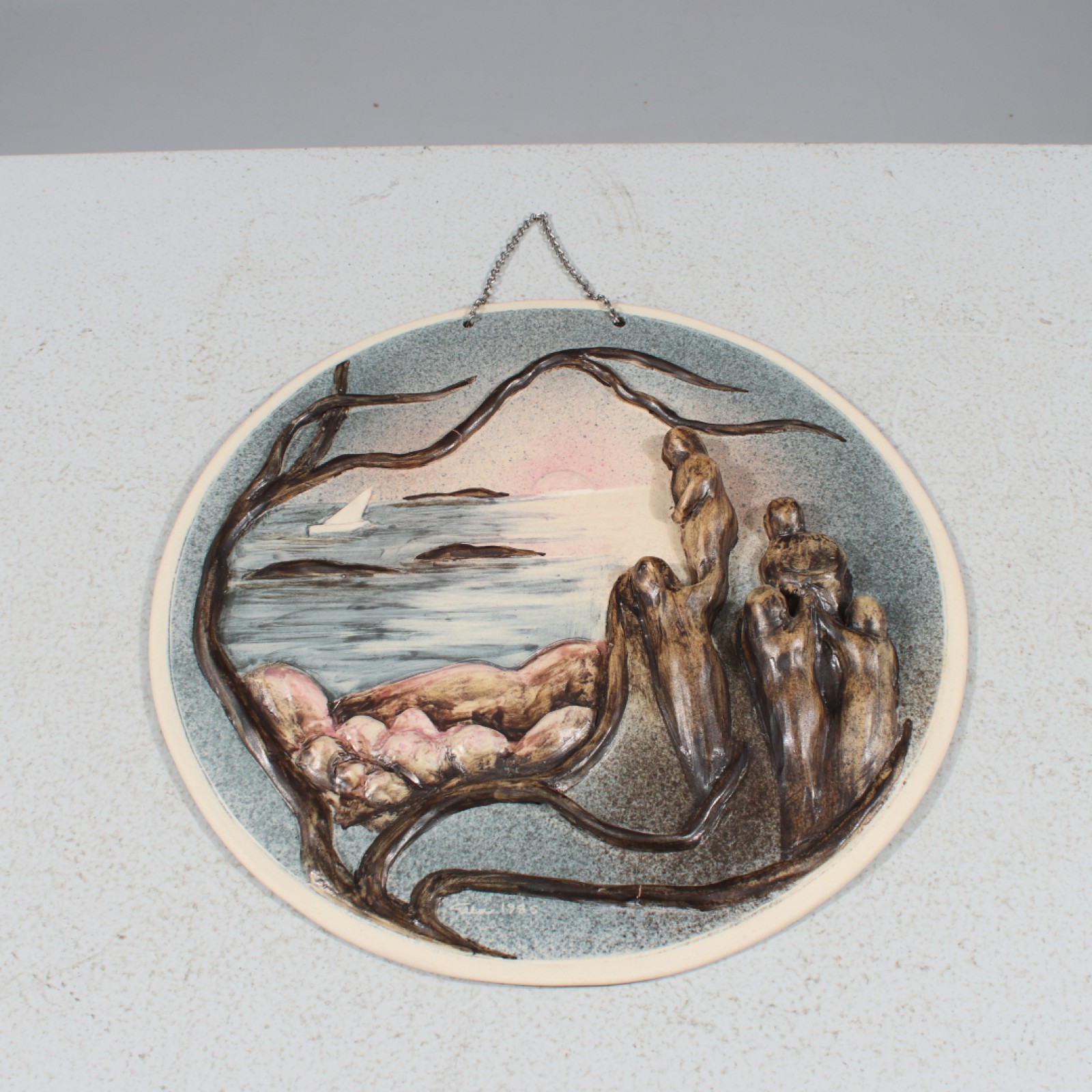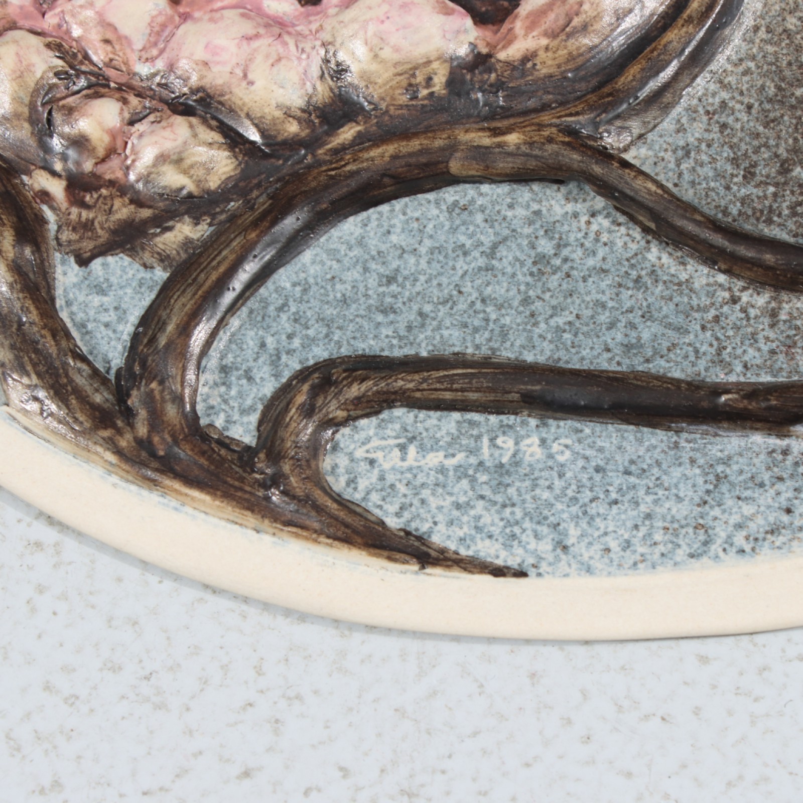 Signerad Ella samt daterad 1985, diameter 35 cm. (vån3)