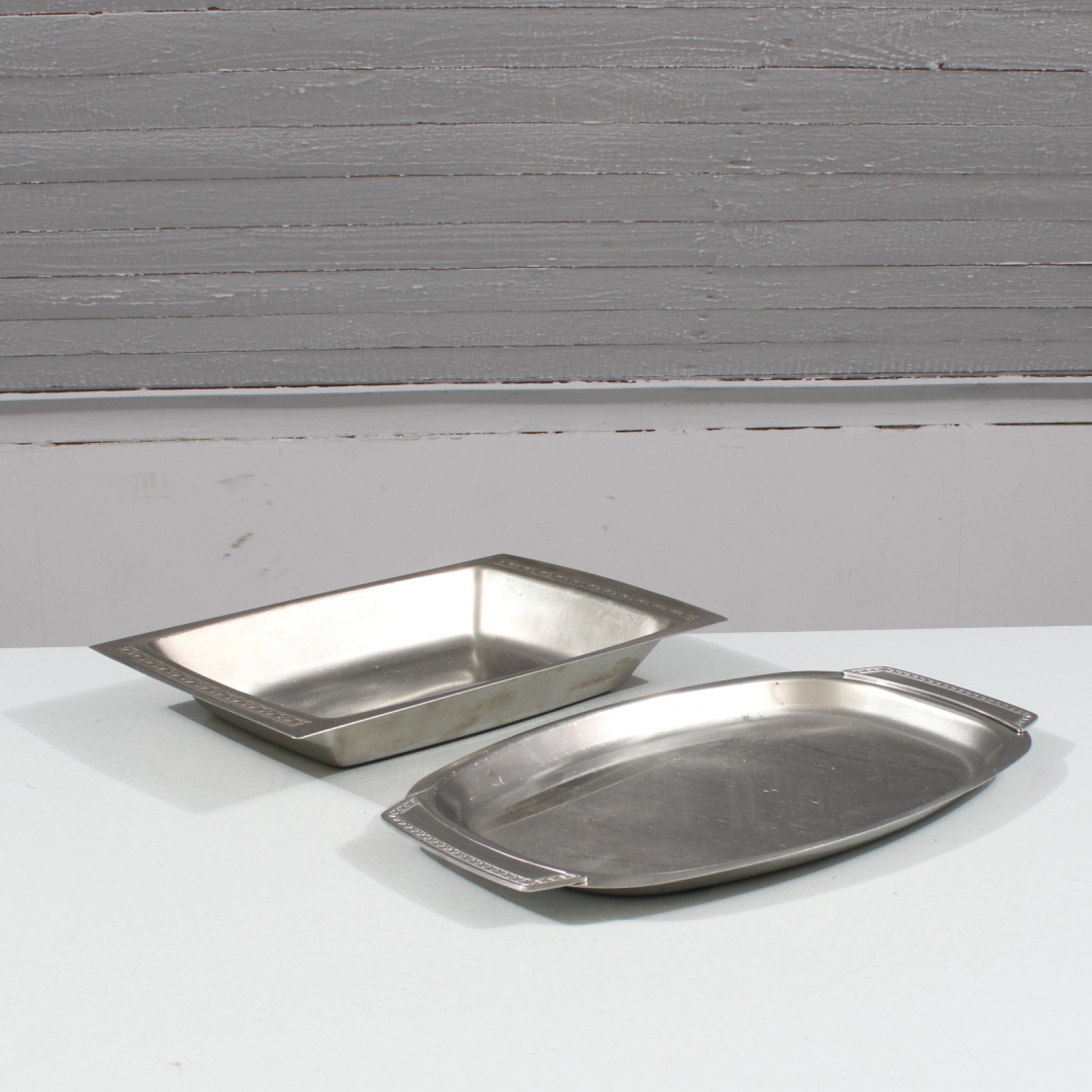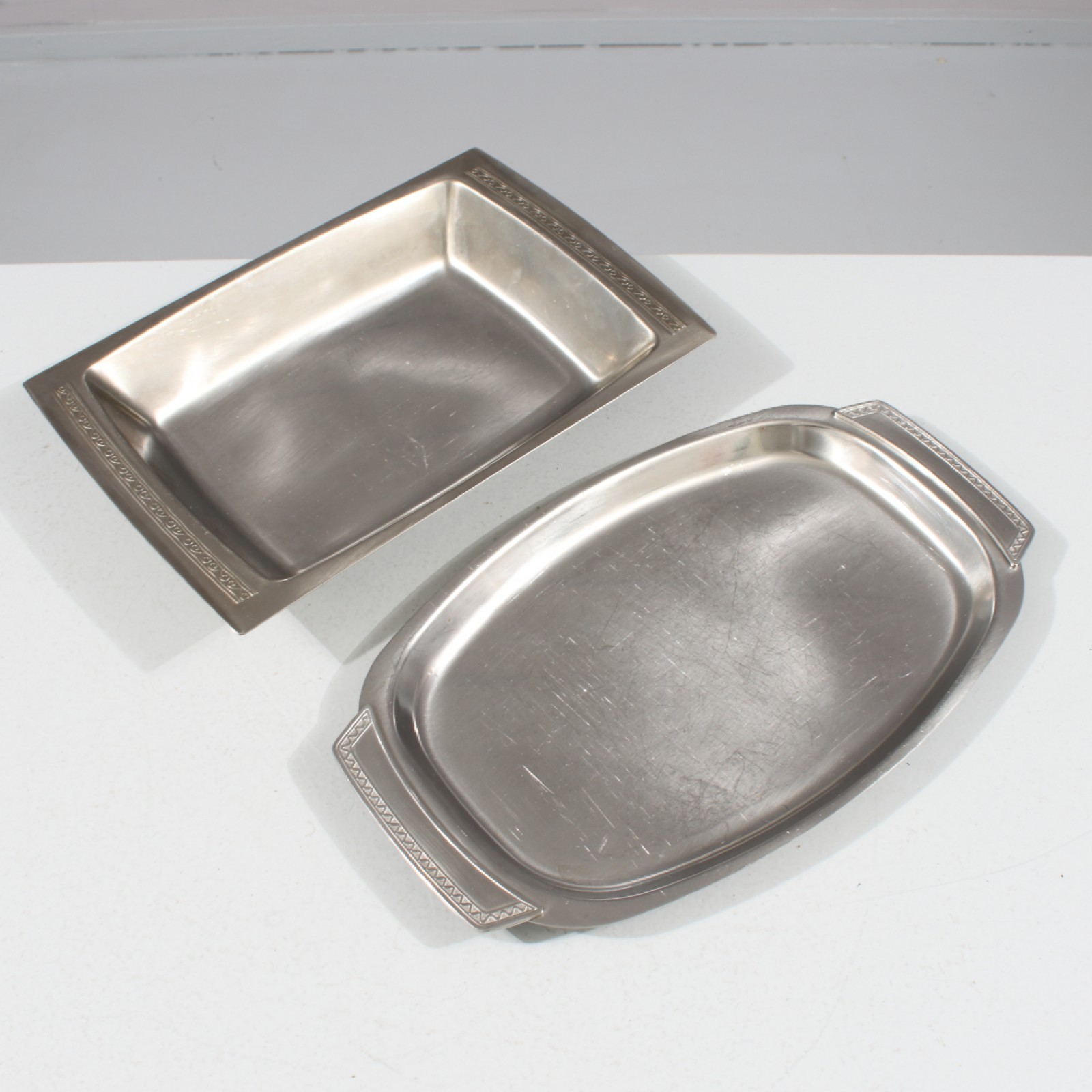 NILS JOHAN "SESSAN" SAMT GENSE "RANKA" 2 delar, rostfritt, 1st skålfat "Sessan" 4x30,5x20 cm samt 1st upplfat "Ranka" 35x21 cm. (vån3) Avslutas 2026-02-15 18:11:00