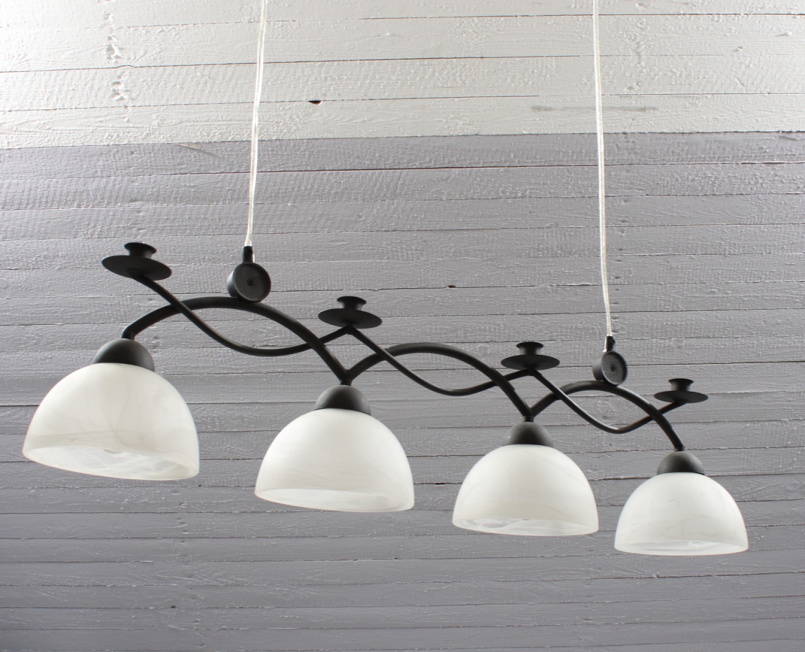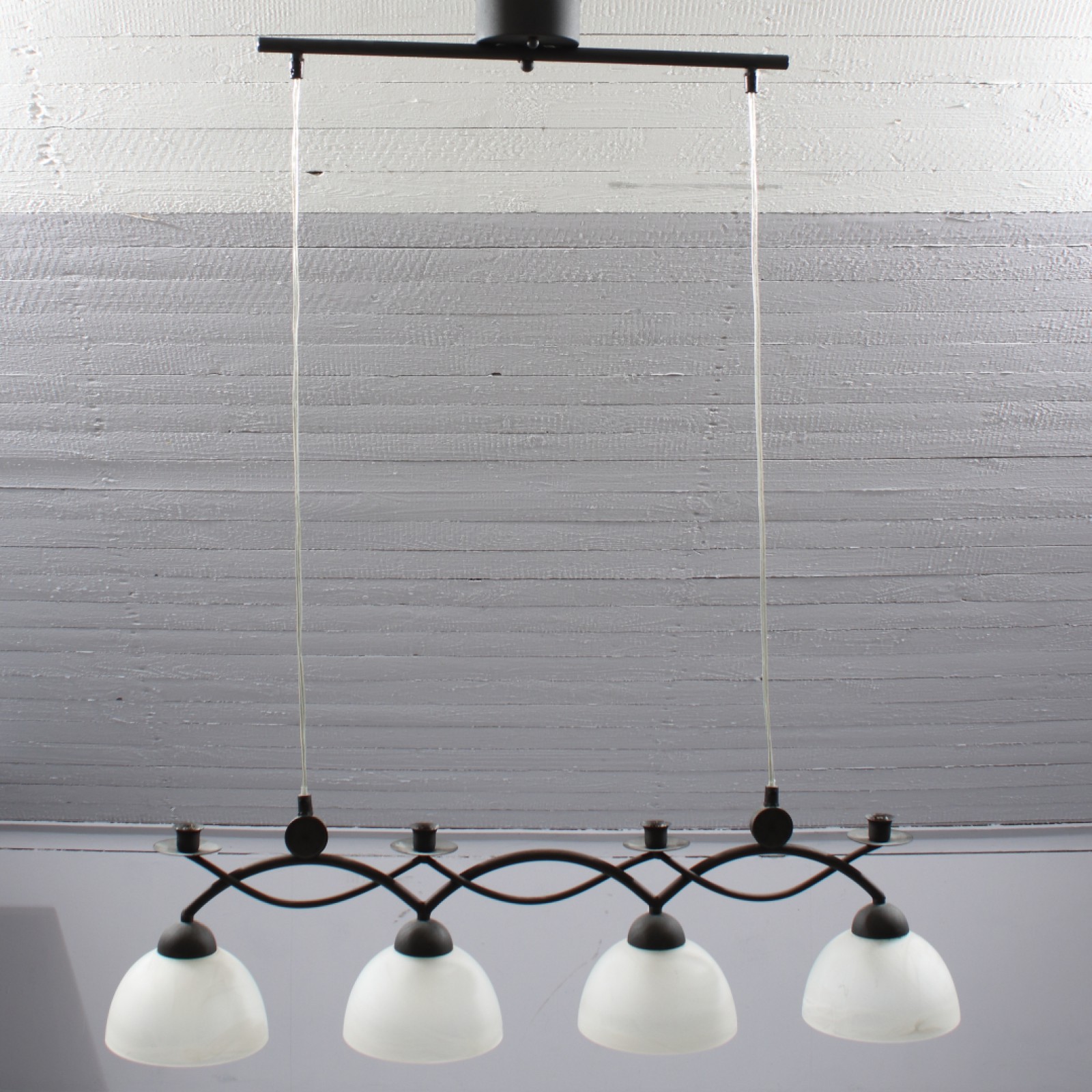 TAKLAMPA Stomme i järn, skärmar i glas, 4-armad, höjd utan sladd ca:25 cm, bredd 85 cm. (vån1) Avslutas 2026-02-15 18:03:00