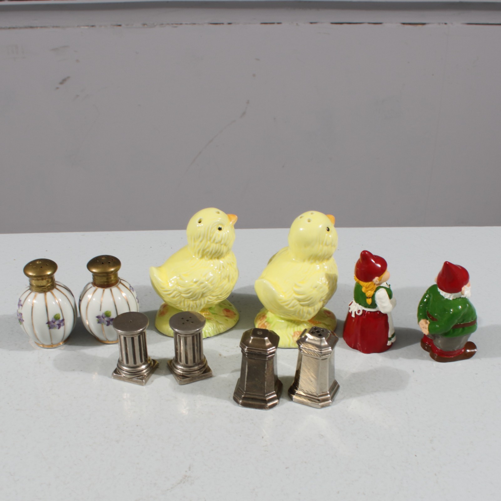 SALT OCH PEPPARSTRÖARE 10 stycken (5 par), olika material, höjd 4-8,5 cm. (vån3) Avslutas 2026-02-22 18:04:00