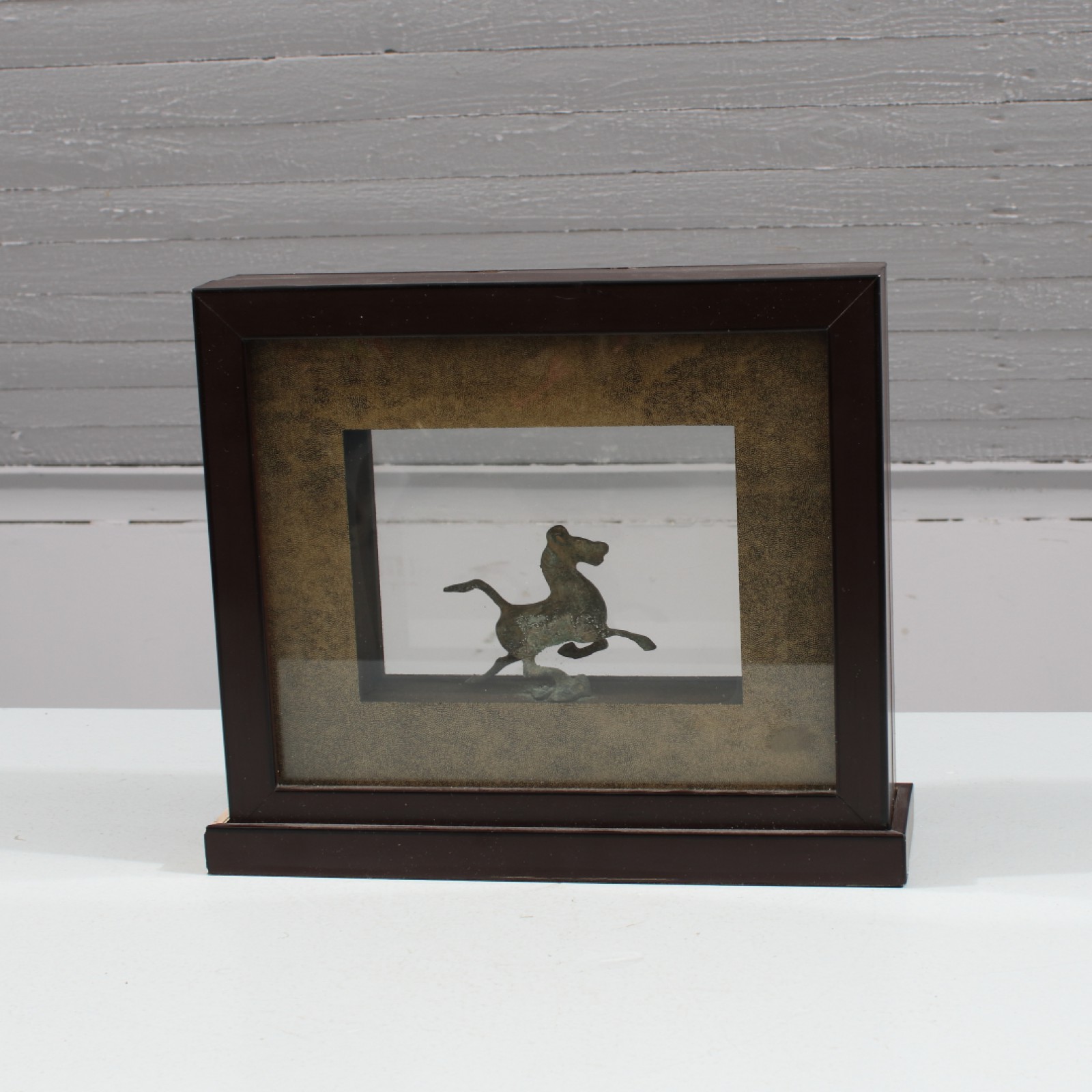 TAVLA MED HÄST I METALL 2000-tal, ram 27x32 cm, häst höjd 7,5 cm. (vån3) Avslutas 2026-02-22 18:11:00