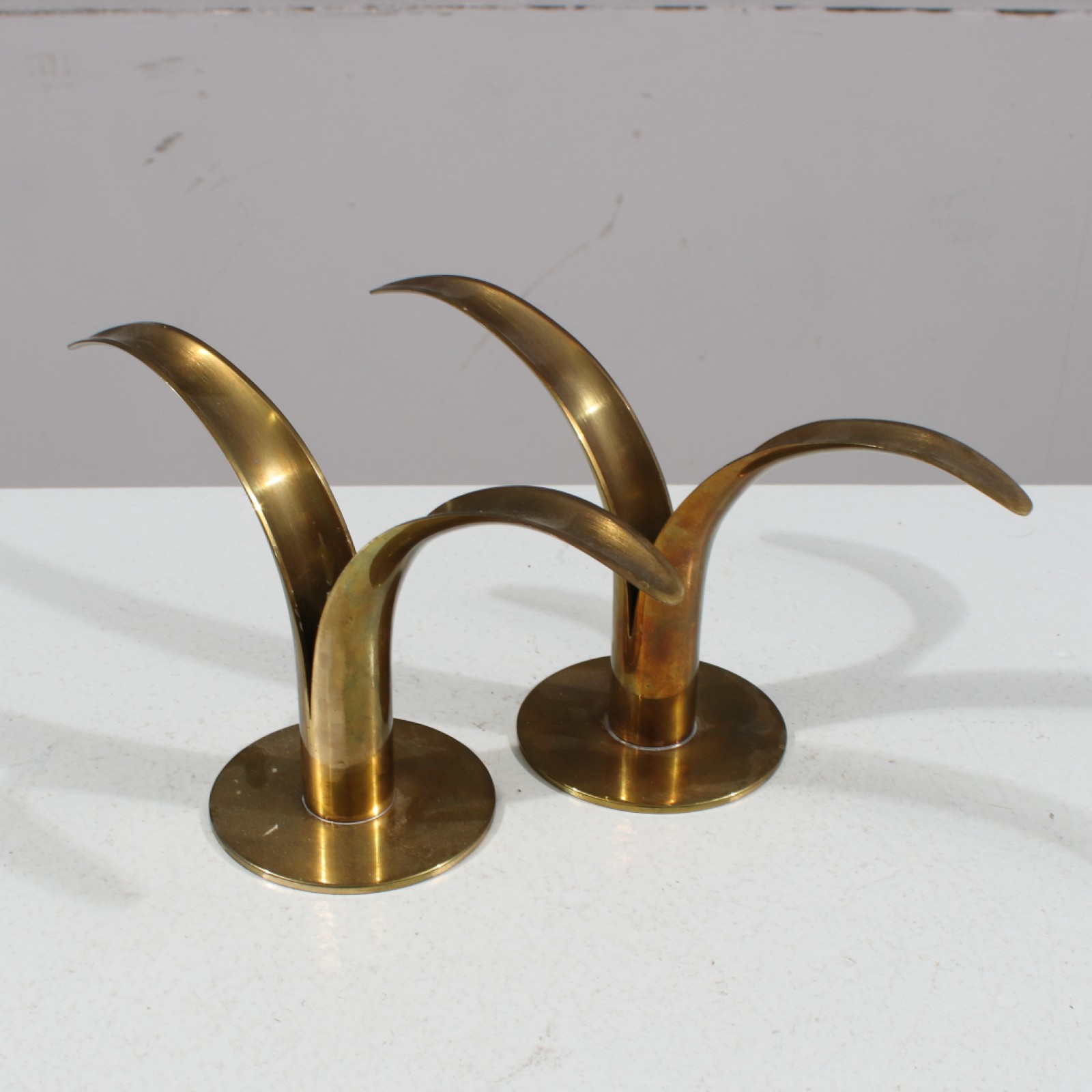 IVAR ÅLENIUS BJÖRK "LILJA" LJUSSTAKAR, YSTAD METALL 2 stycken (1 par), mässing, höjd 12 cm, bredd 22 cm. (vån3) Avslutas 2026-02-22 18:19:00