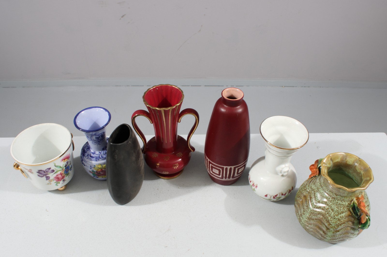 VASER OCH BLOMKRUKA 6st vaser varav 1st Gefle Röd Rubin samt 1st Karlskrona blomkruka, höjd 12,5-24 cm. (vån3) Avslutas 2026-02-22 18:00:00