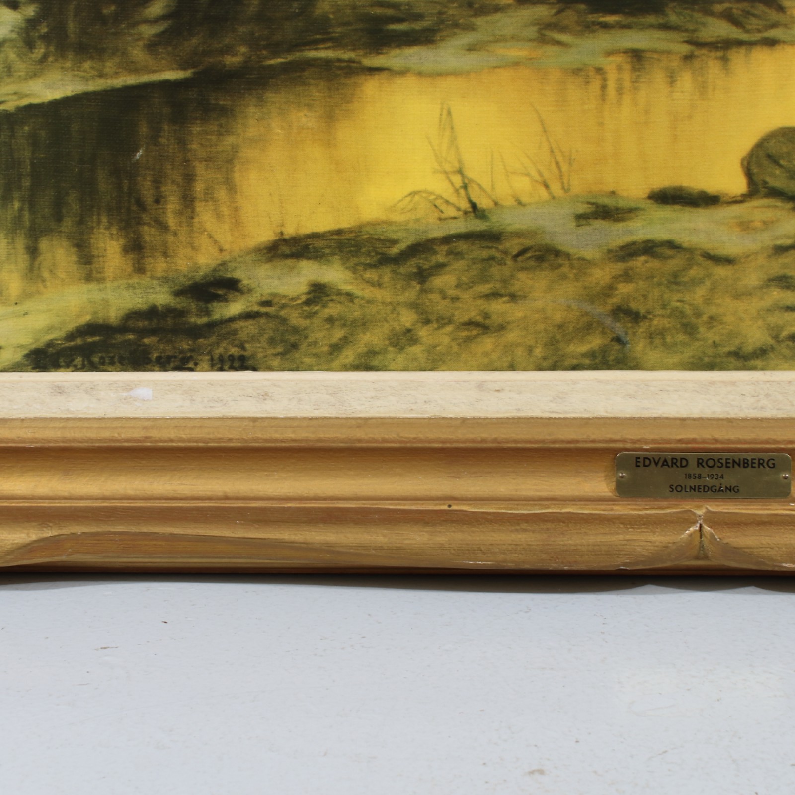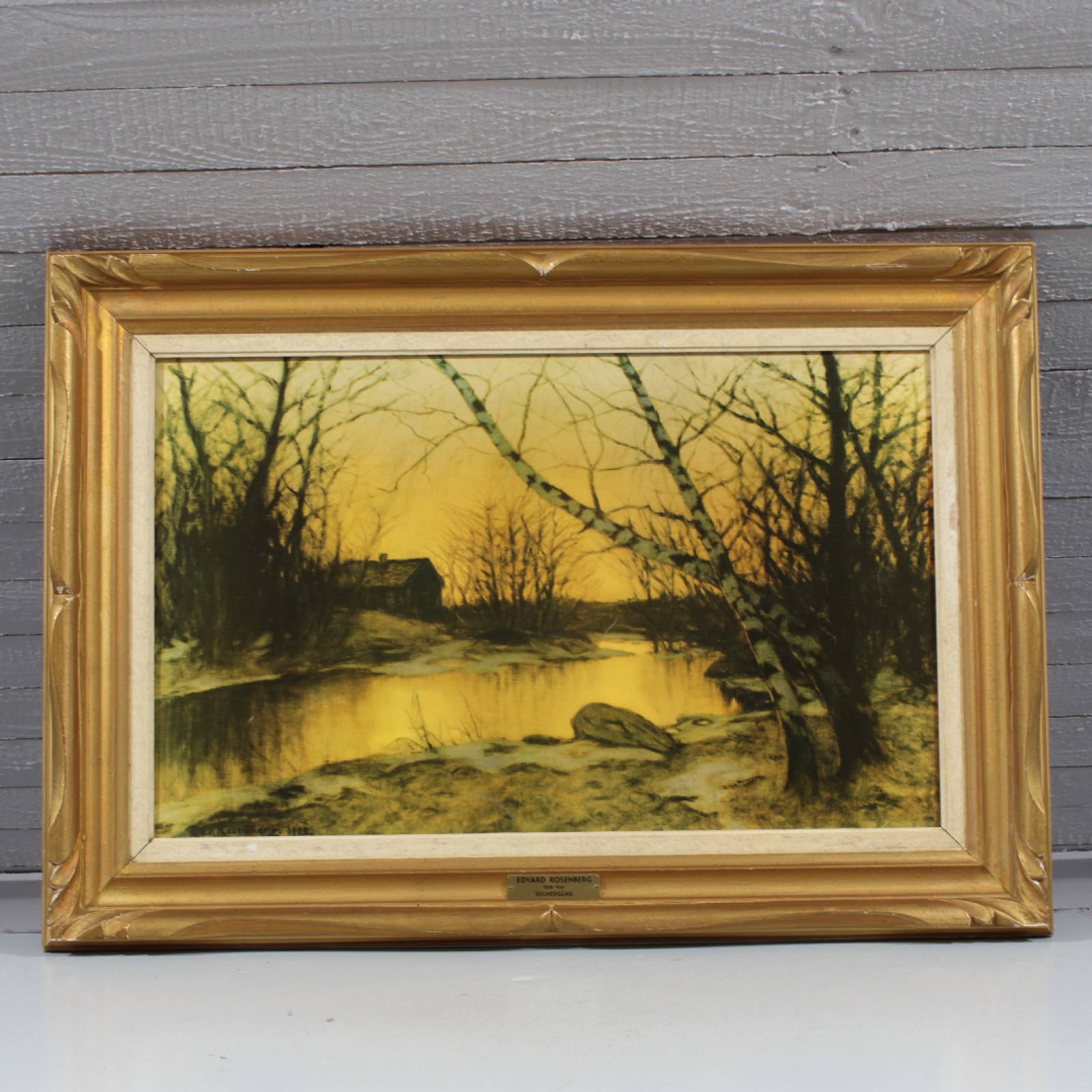 Oljetryck på duk, reproduktion, "Solnedgång", ram 56x80 cm, bild 38x62 cm. (vån1)