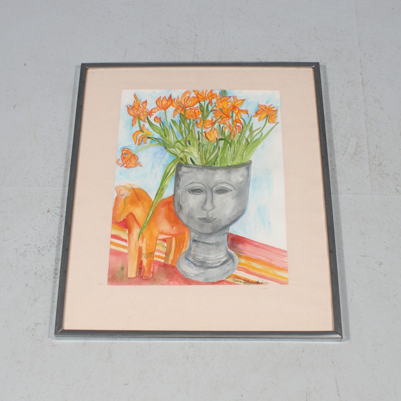 Akvarell, ram 60x50 cm, passepartout 43x32,5 cm. (vån3)