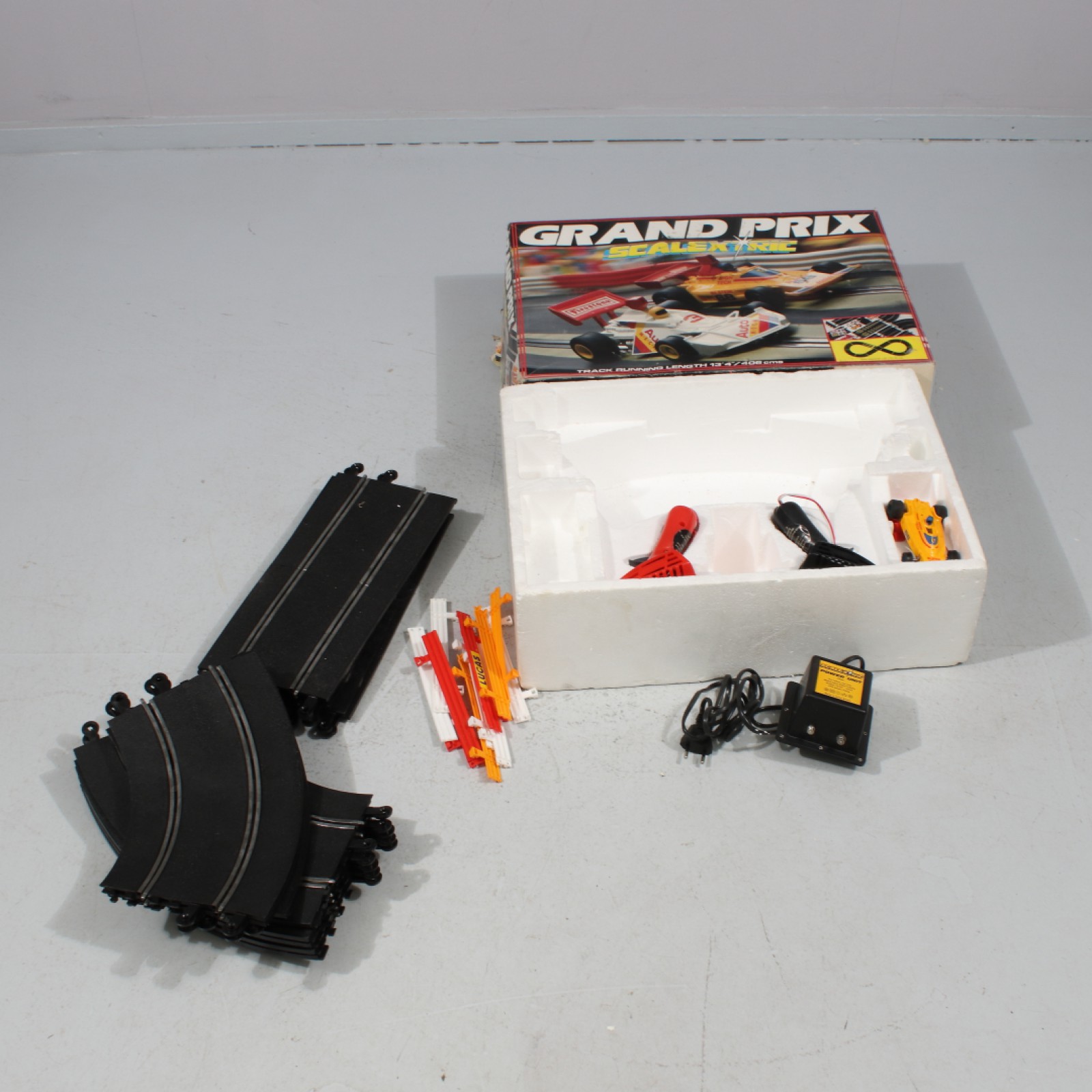 SCALECTRIC "GRAND PRIX" BILBANA ej komplett sats, 1st bilsaknas den andra bilen med lös motor och vinge, ej testad (ingen garanti lämnas). (vån3) Avslutas 2026-03-15 18:03:00