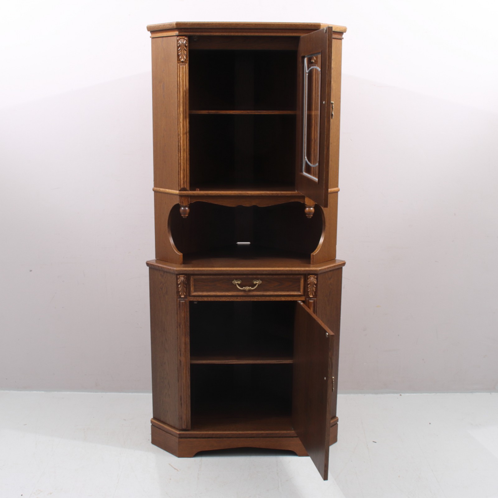 HÖRNSKÅP MED VITRINÖVERDEL