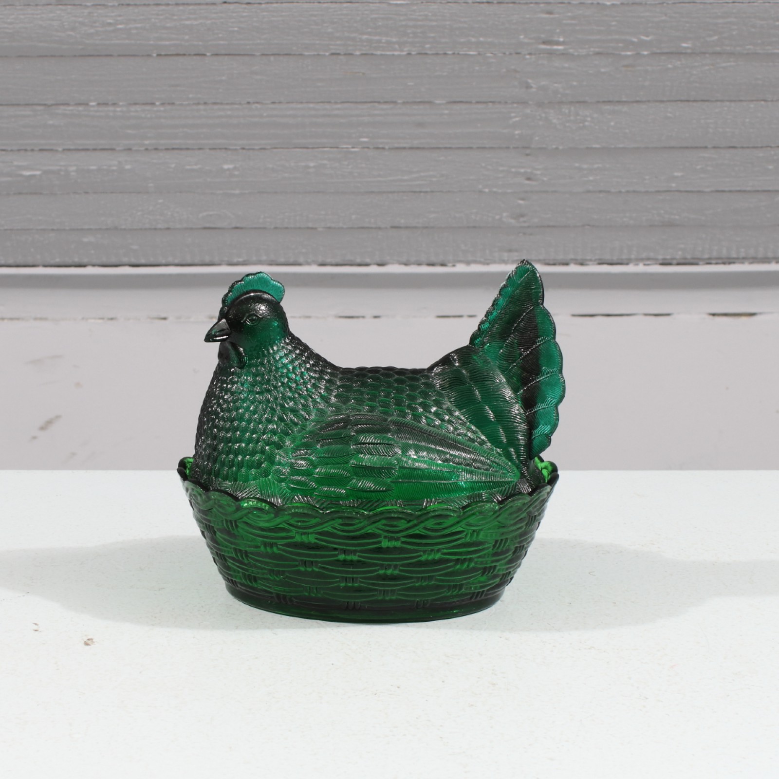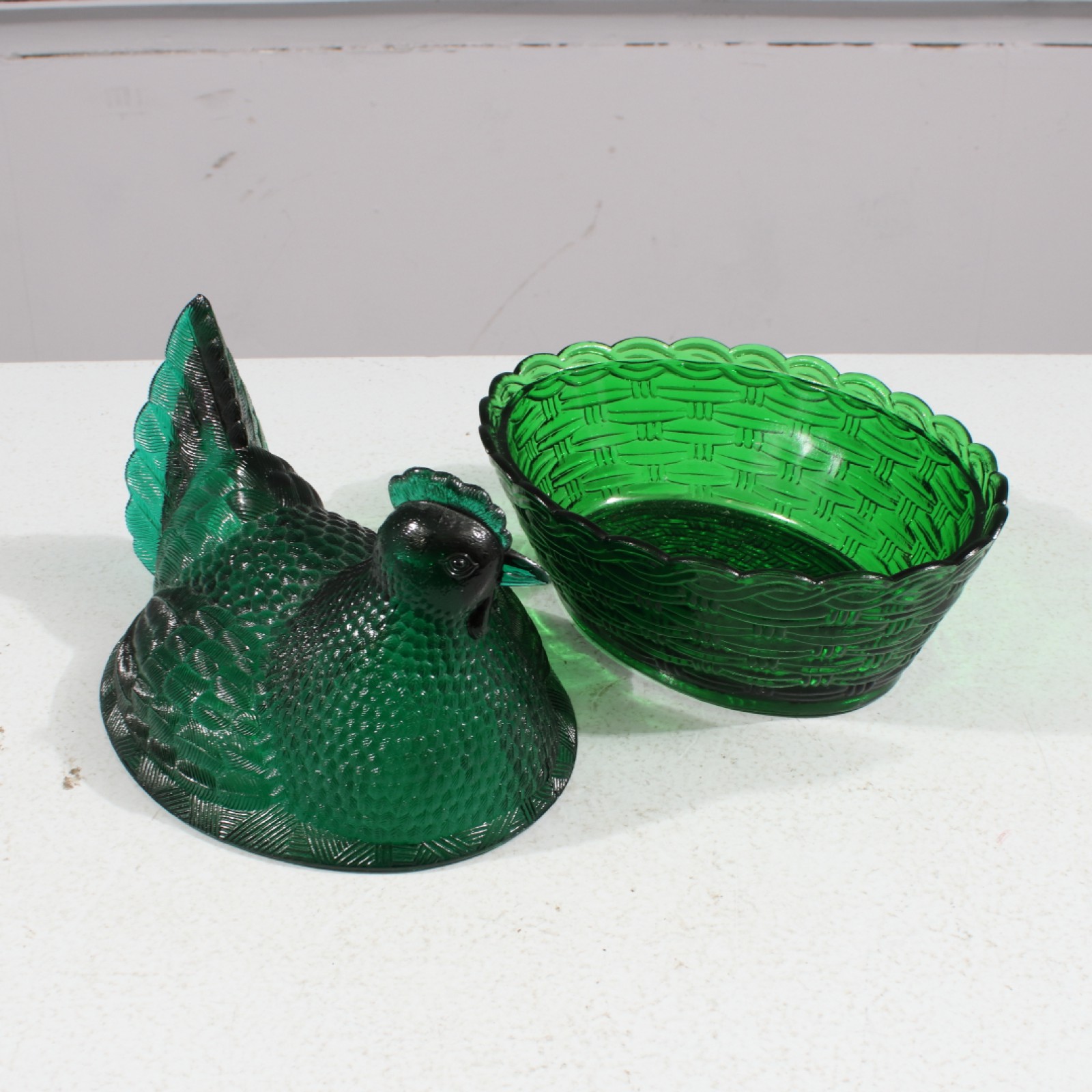 ÄGGÖMMA "HÖNA" Glas, OBS! mindre nyansskillnad på skål och höna (se sista bild), höjd ca:19 cm, mynning 21x17 cm. (vån3) Avslutas 2026-04-19 18:14:00