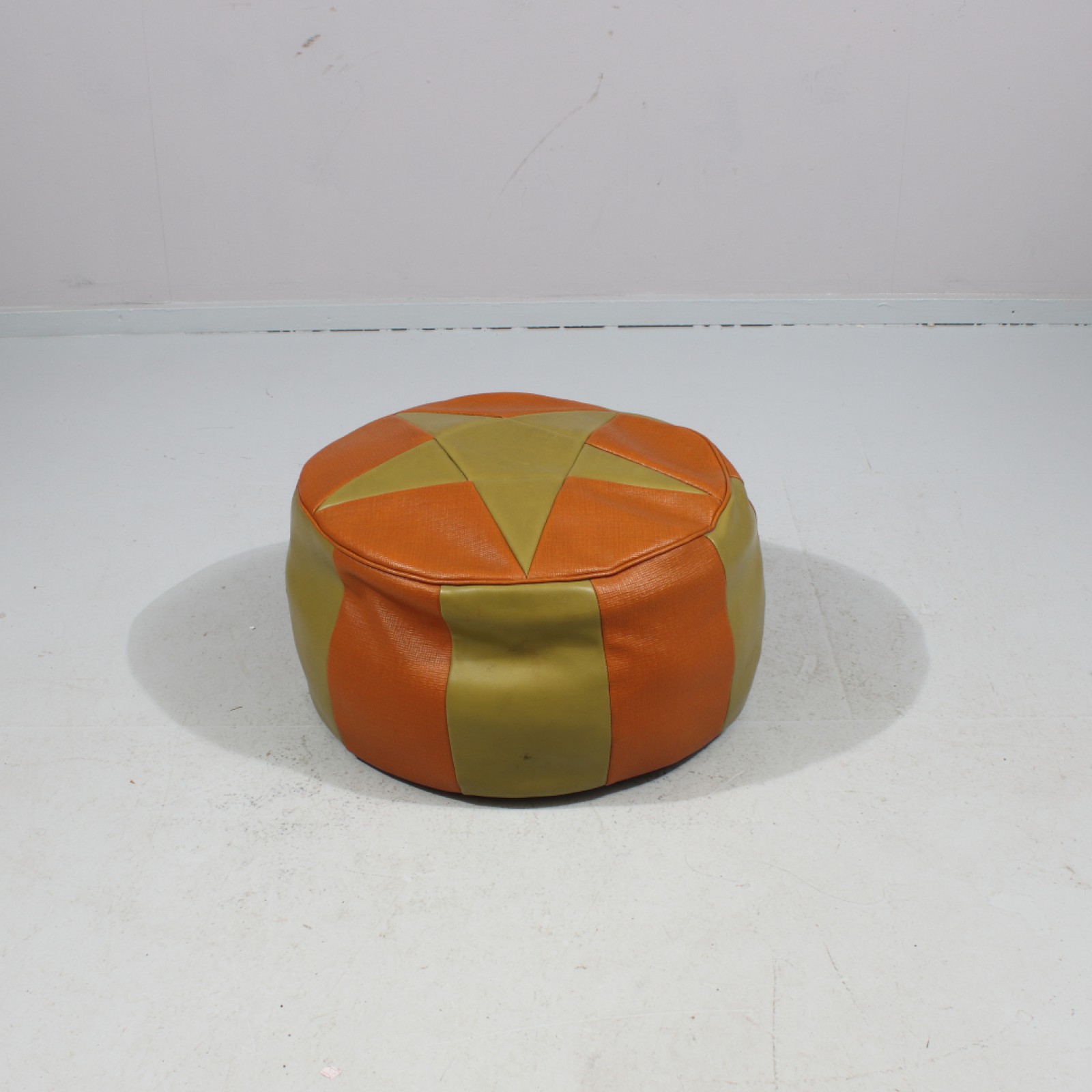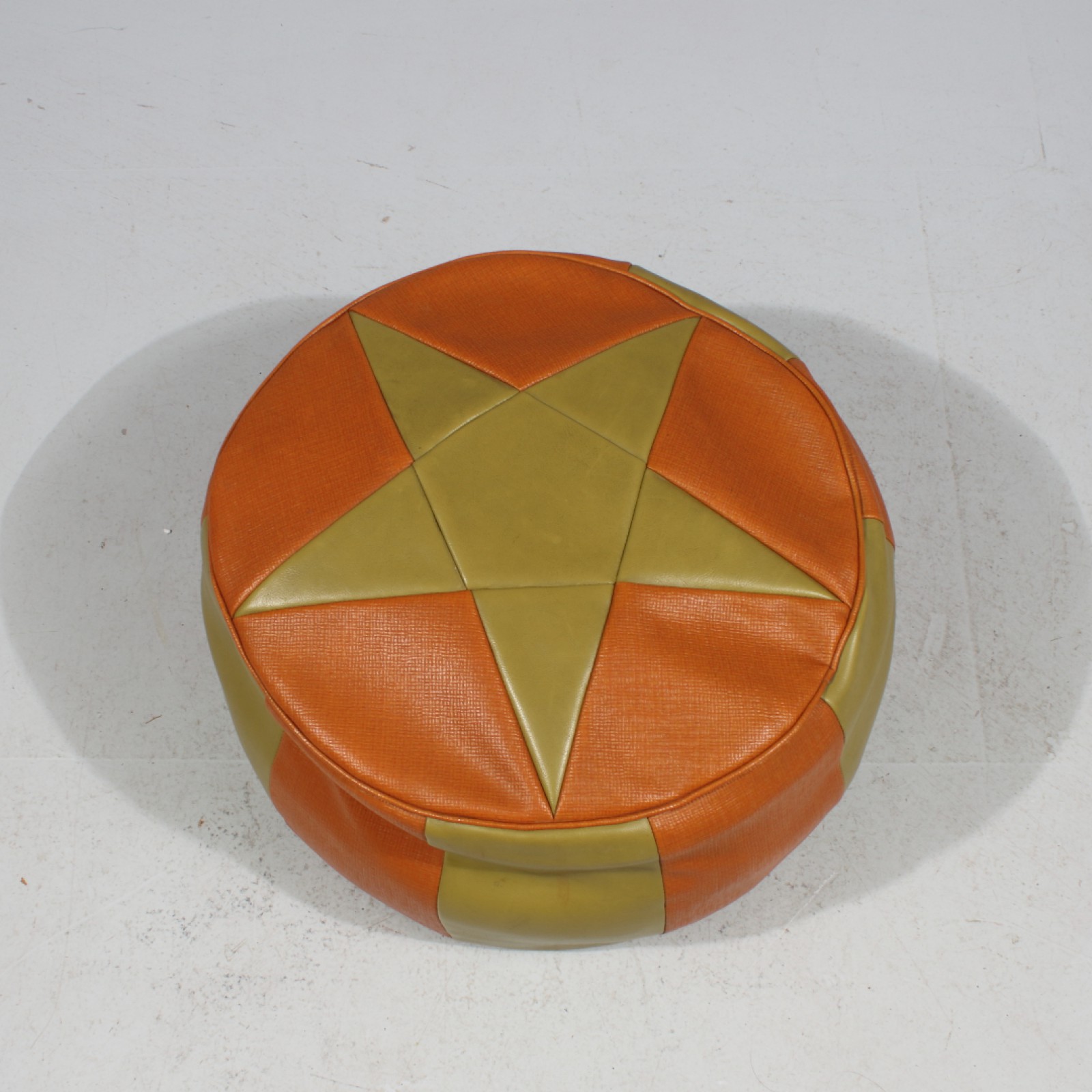 SITTPUFF Läder och konstläder, 1900-talets andra hälft, mindre bruksslitage, höjd 26 cm, diameter 45 cm. (vån3) Avslutas 2026-04-05 18:07:00