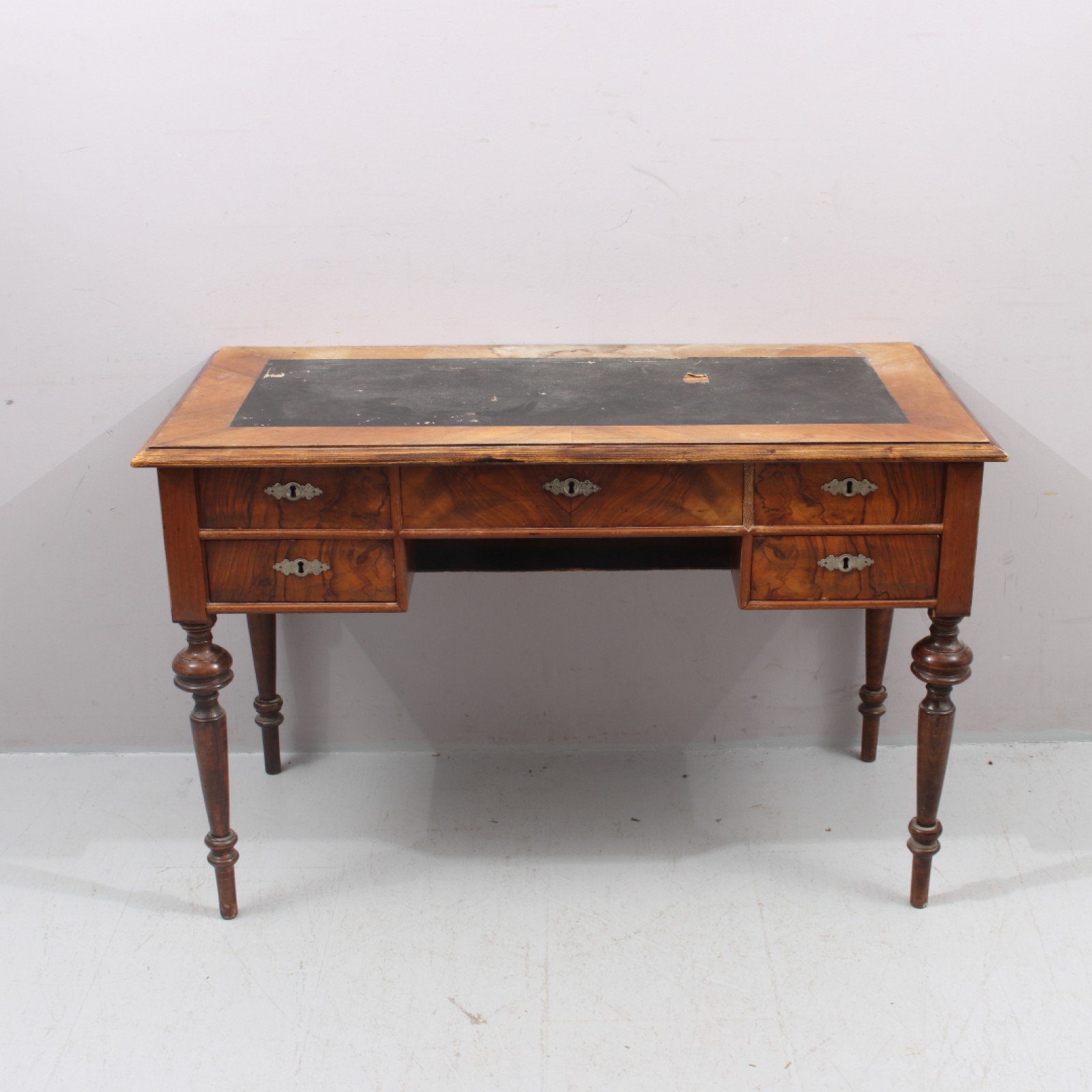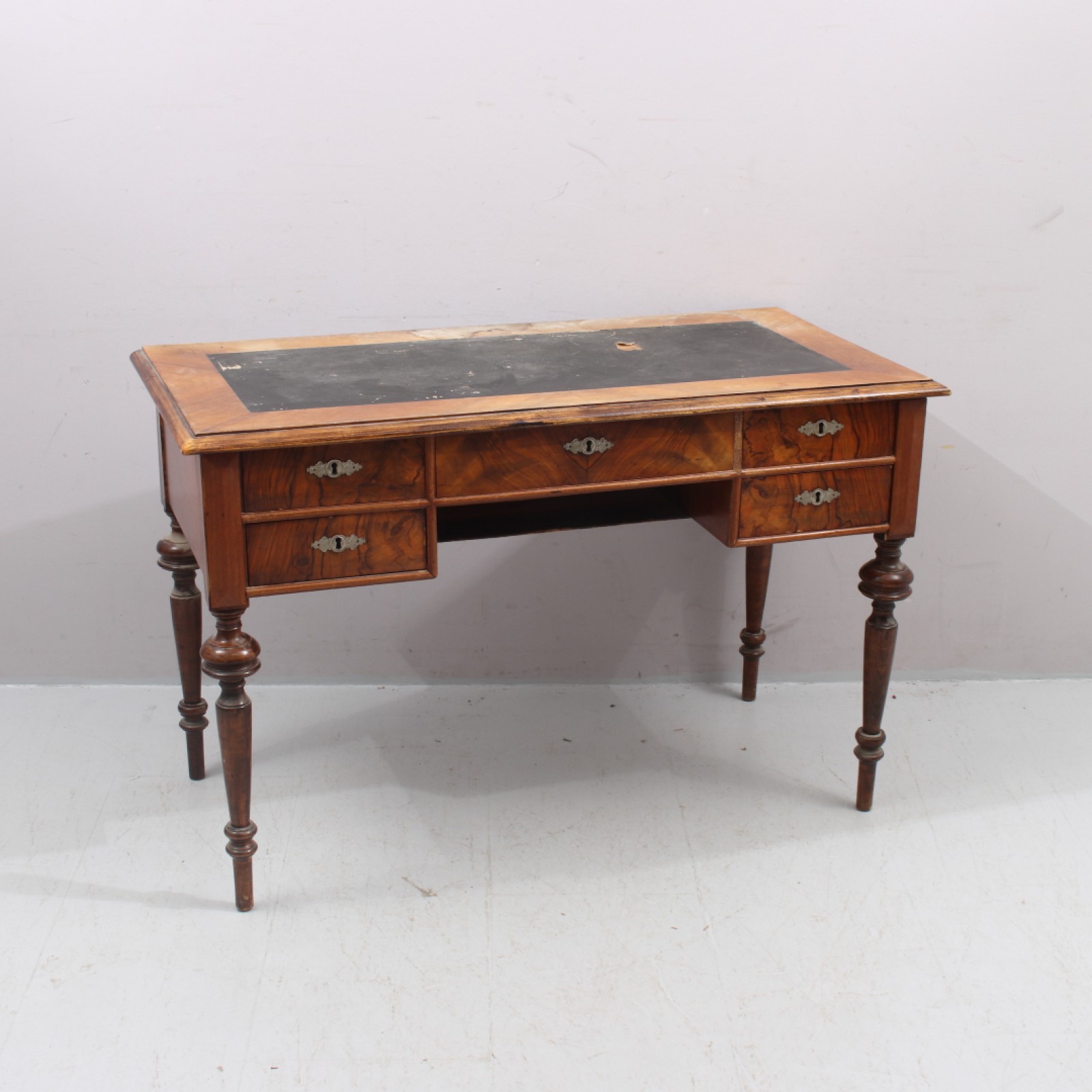 SKRIVBORD 18,1900-tal, upplåst men nyckel saknas, åldersrelaterat slitage, skiva med kraftigt slitage (se bilder), H.76, B.118, Dj.59 cm. (vån1) Avslutas 2026-04-05 18:12:00