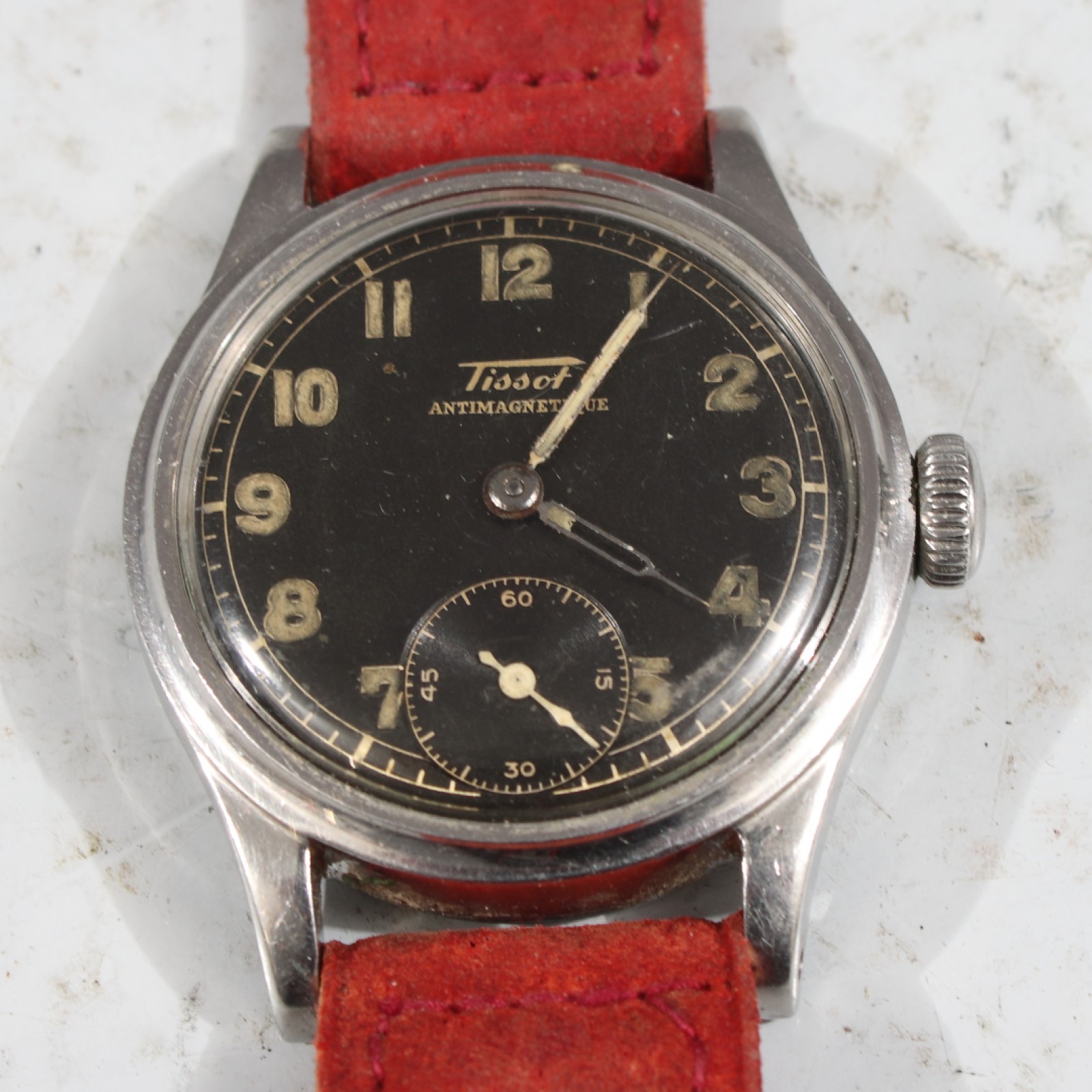 TISSOT ARMBANDSUR "VINTAGE" Stål, manuell, svart urtavla, subsekund, 1900-talets mitt, nytt armband, gångbar vid kontroll, bredd utan krona 30 mm. (vån3) Avslutas 2026-04-05 18:12:00