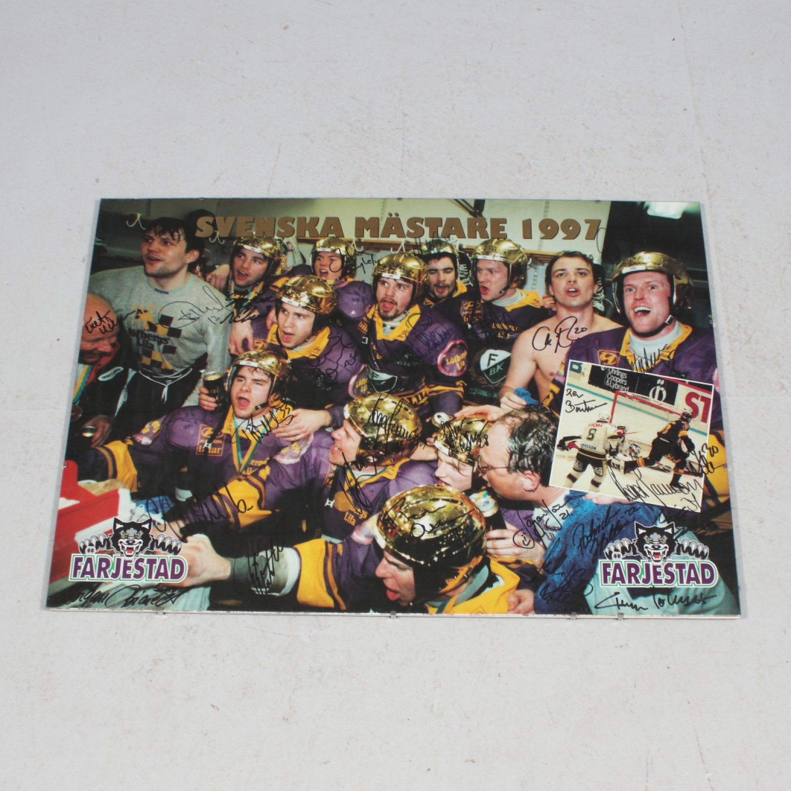 FÄRJESTAD BK "SVENSKA MÄSTARE 1997" Poster med spelarnas autografer, 50x70 cm. (vån3) Avslutas 2026-04-05 18:19:00