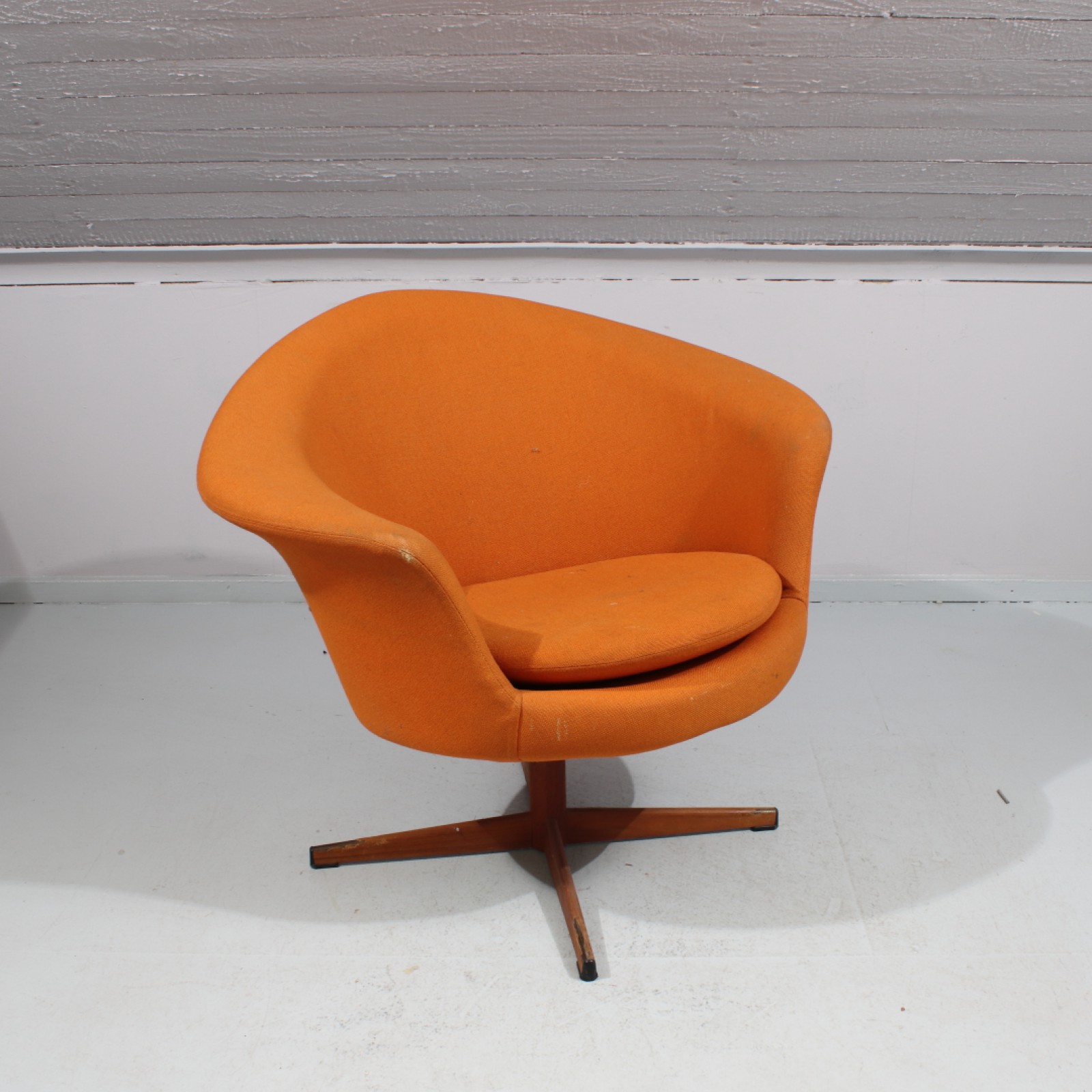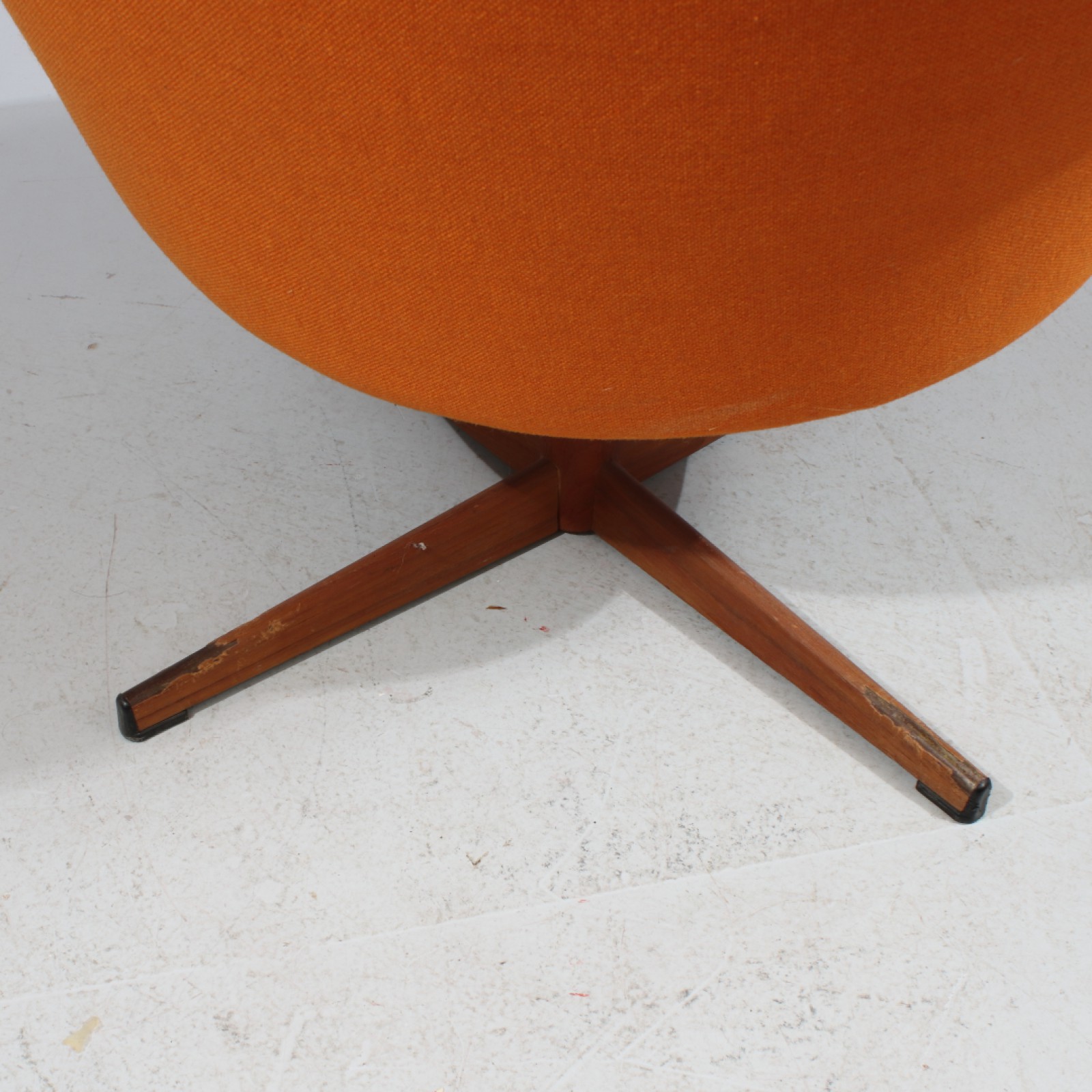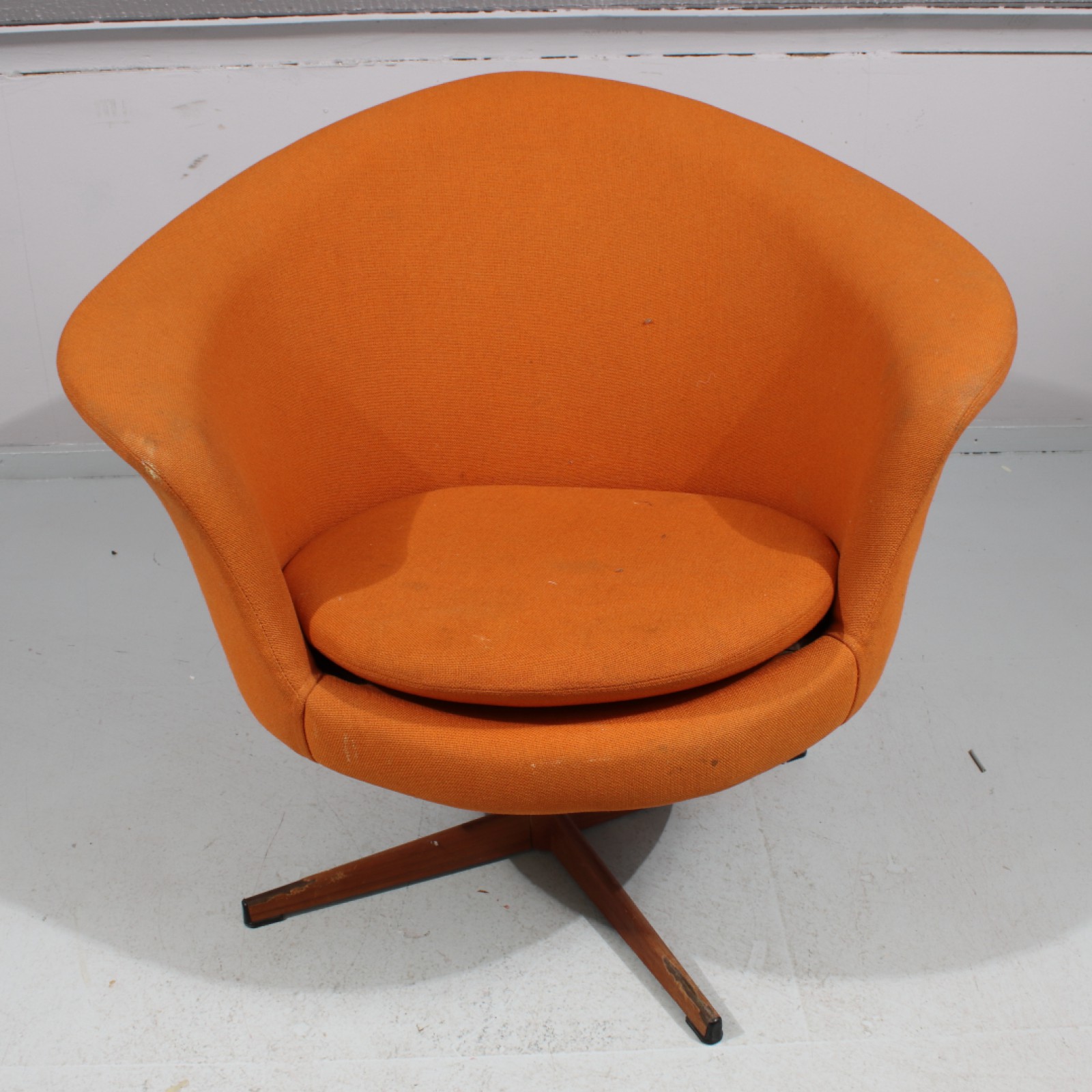 SNURRFÅTÖLJ "RETRO" Tygklädsel, ben i järn med teakfaner, 1960,70-tal, slitage, ben ställvis med faneravslag, Rh.70, B.85, Sh.40 cm. (vån3) Avslutas 2026-04-19 18:16:00