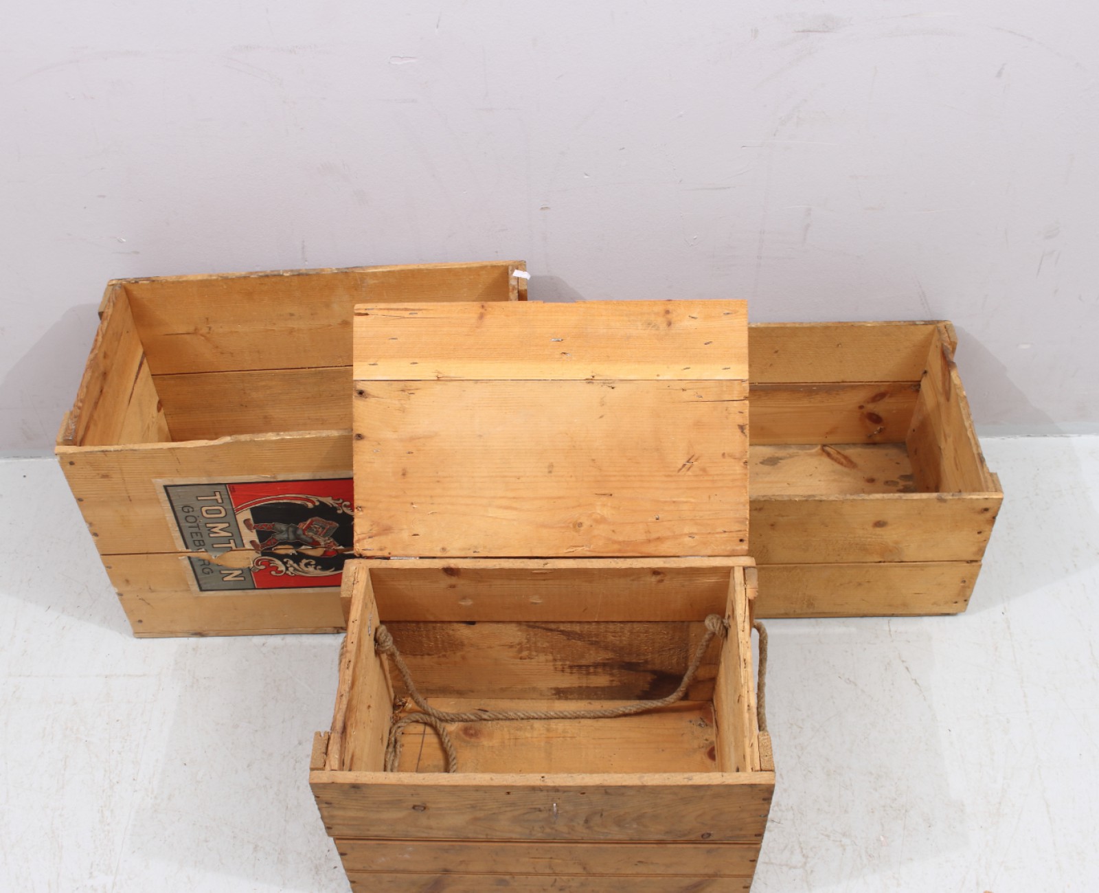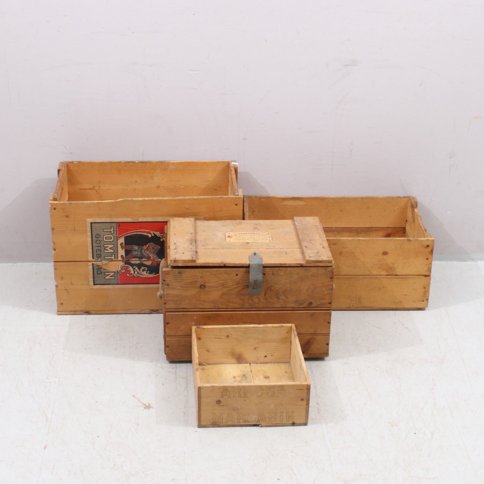 TRÄLÅDOR 4 stycken, 1st med lock, 1900-talets mitt, H.12-36, L.28-54, B.26-32 cm. (vån2) Avslutas 2026-04-19 18:02:00