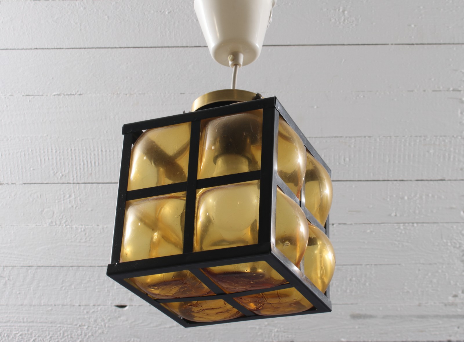 TAKLAMPA Glas och järn, 1960,70-tal, höjd utan sladd 22 cm. (vån1) Avslutas 2025-10-26 18:06:00