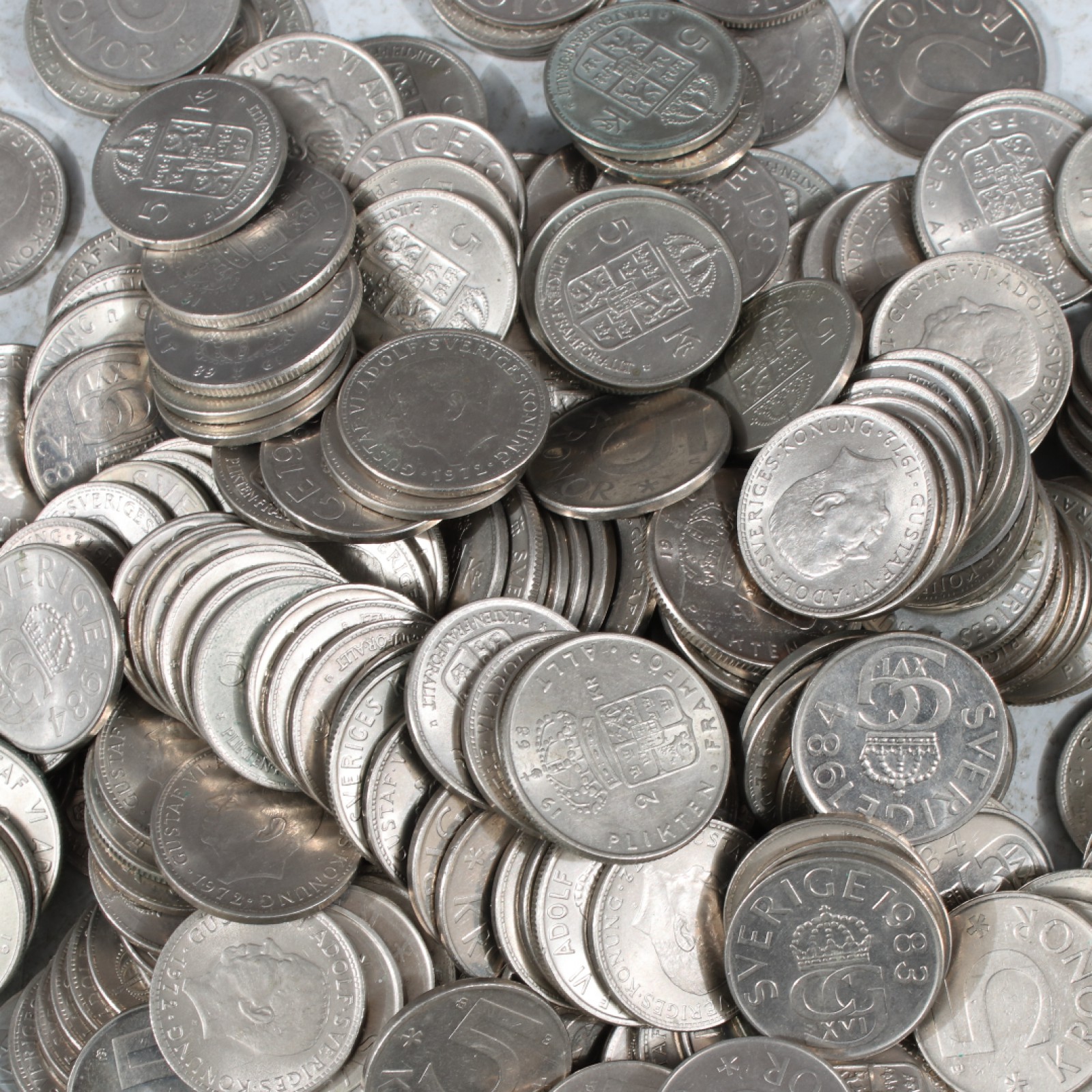 SVENSKA 2 OCH 5 KRONOR Samling, nickel-koppar, vikt 2,9 kg. (vån3) Avslutas 2025-12-07 18:07:00