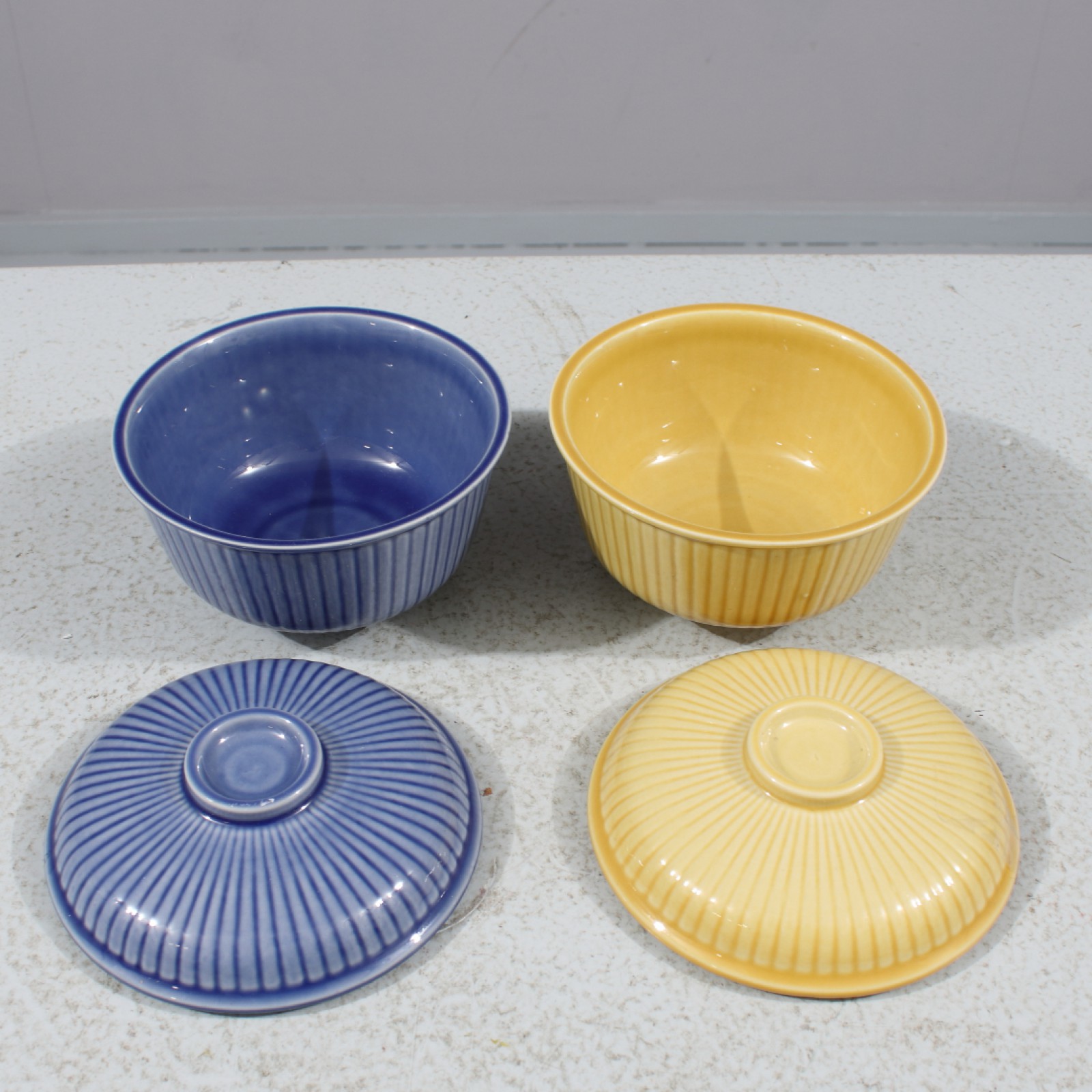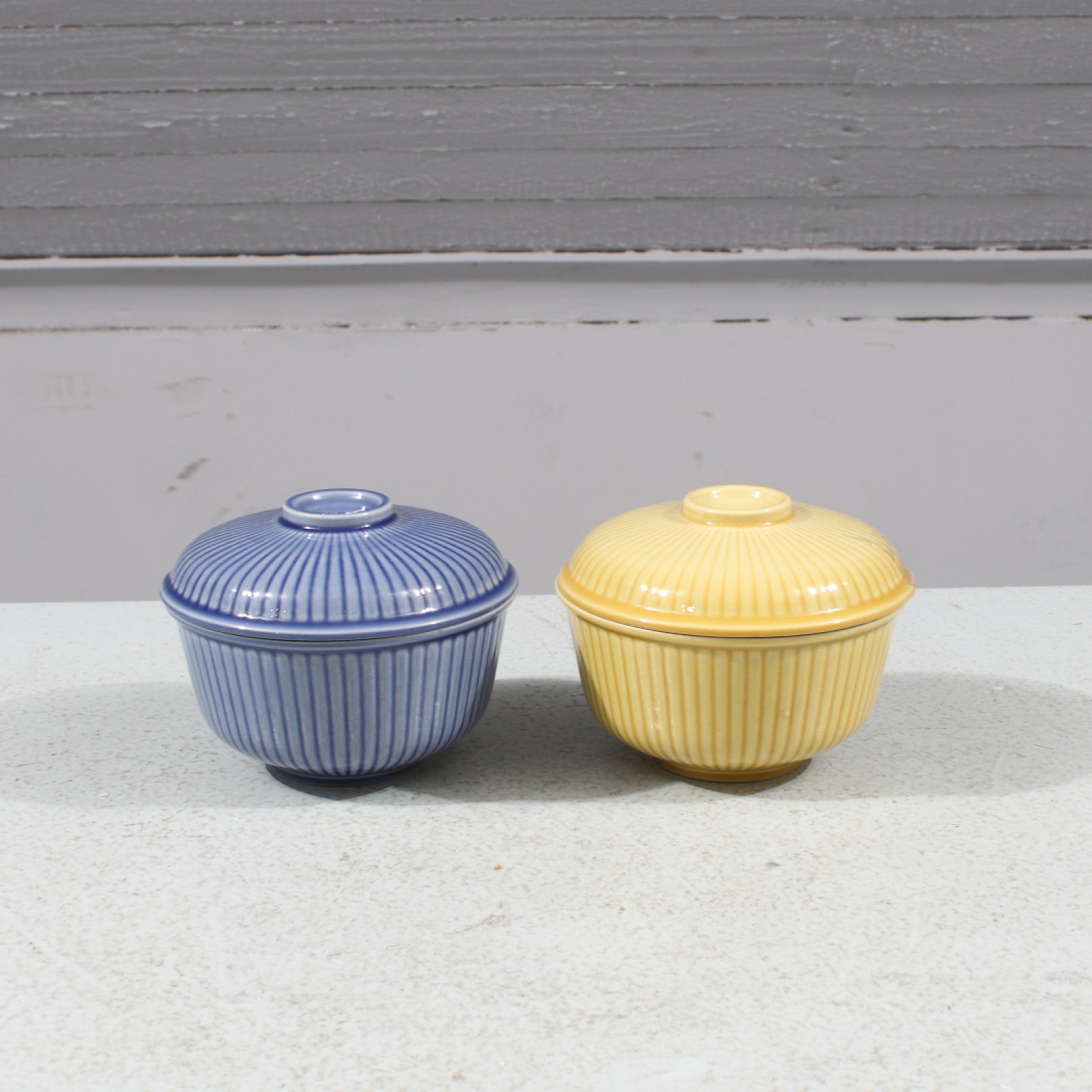 HERTHA BENGTSSON "KOLORITA" RÖRSTRAND 2 stycken skålar med lock, höjd ca:8,5 cm, diameter 11 cm. (vån3) Avslutas 2025-12-07 18:05:00