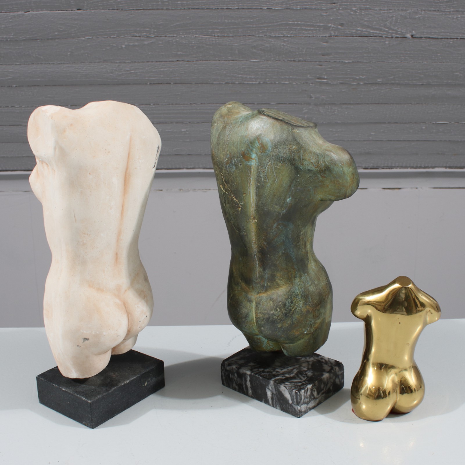 SKULPTURER "TORSO" 3 stycken, olika material, höjd 14-29 cm. (vån3) Avslutas 2026-01-25 18:16:00