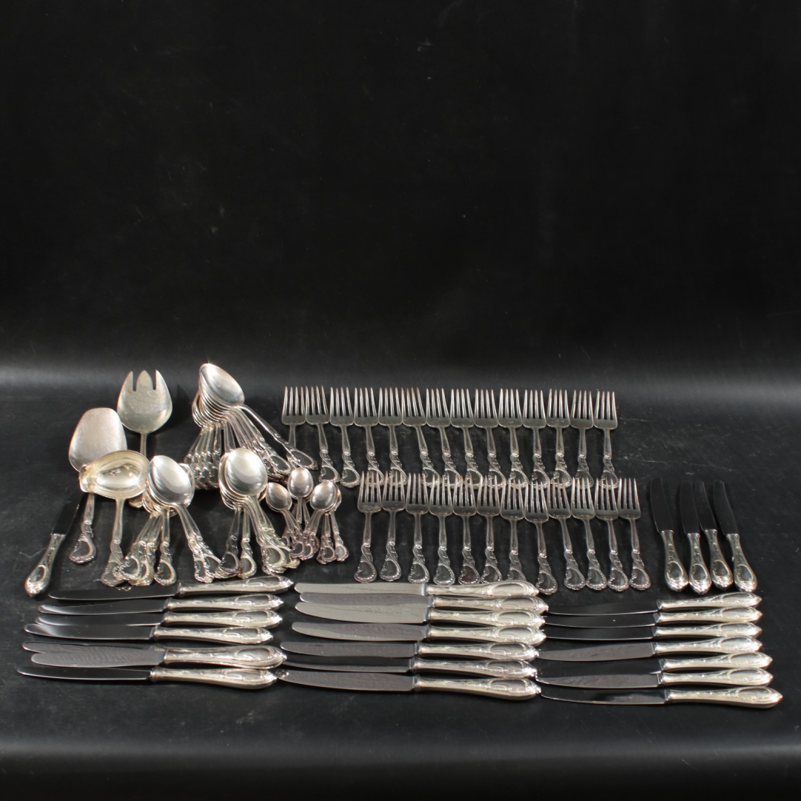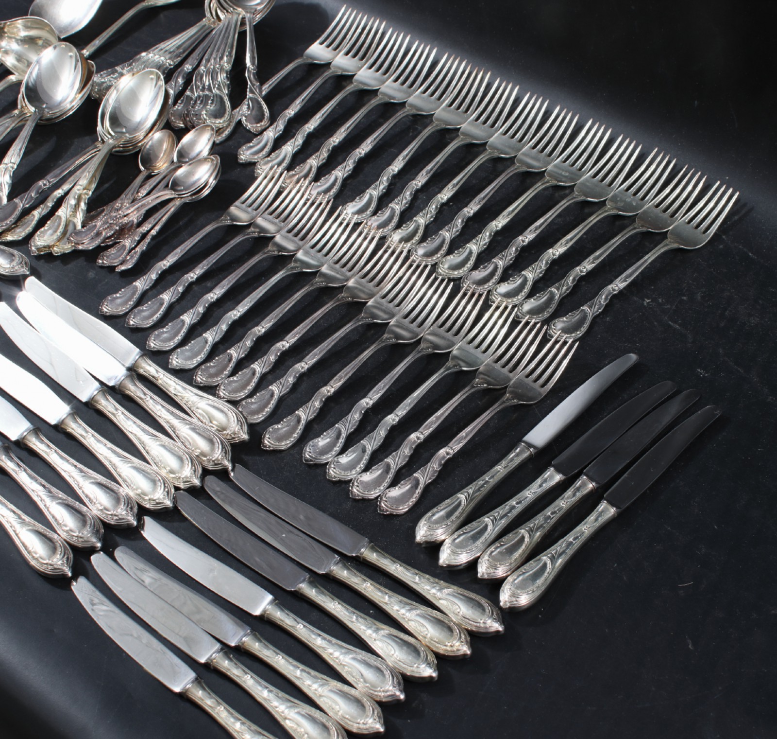 91 delar, GAB, 14st matknivar, 14st matgafflar, 12st matskedar, 12st smörgåsknivar, 12st smörgåsgafflar, 14st dessertskedar, 10st kaffeskedar samt 3st serveringsbestick,