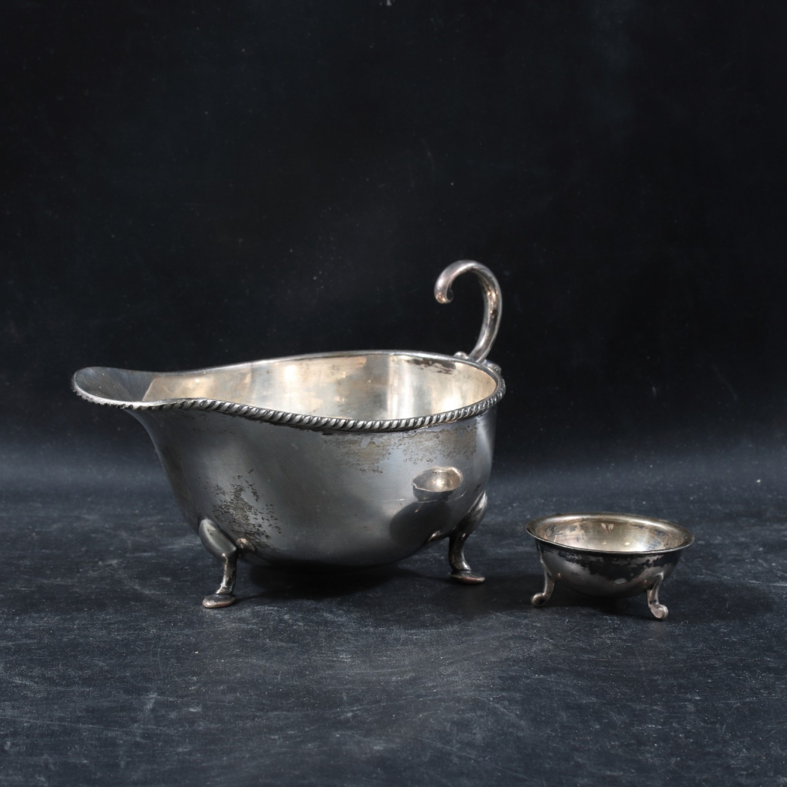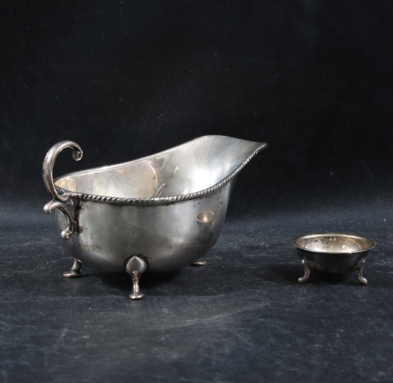 SÅSKANNA OCH SALTKAR 2 delar, båda märkta PAK 94 SIL, nysilver, höjd 2,5-8 cm, vikt 375,5 gram. (vån3) Avslutas 2026-01-25 18:06:00
