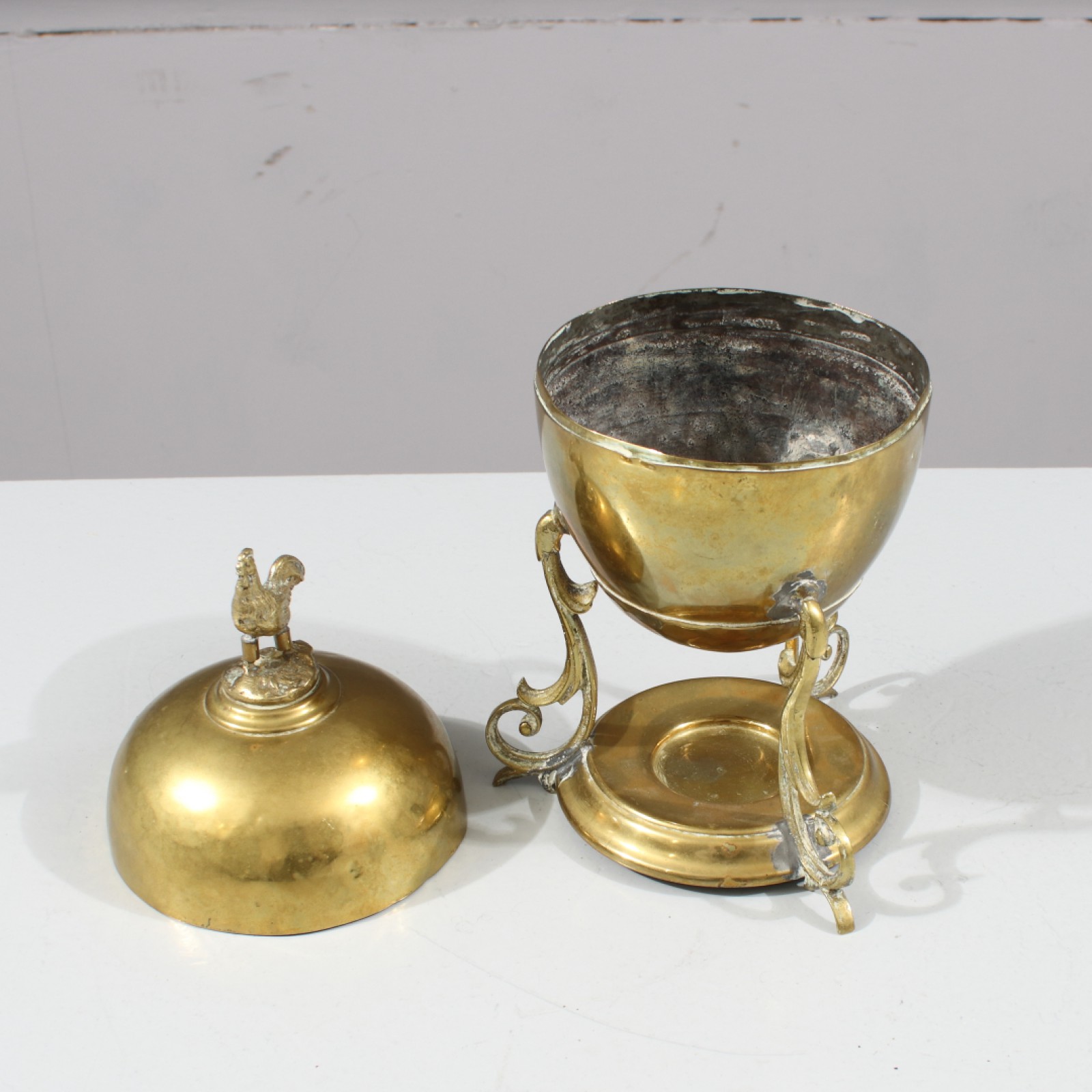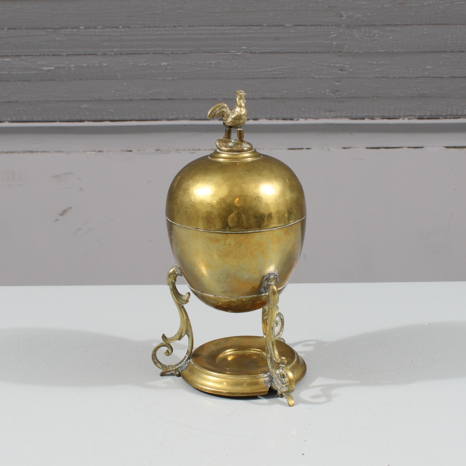 ANTIK ÄGGVÄRMARE Mässing, brännare och insats saknas, höjd ca:22 cm. (vån3) Avslutas 2026-01-25 18:07:00