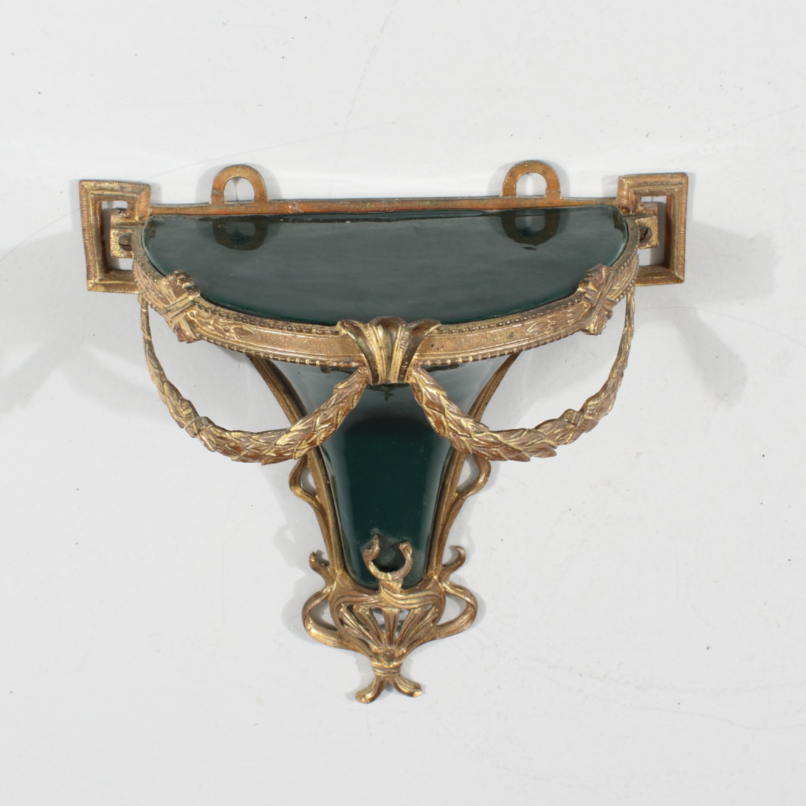 MINDRE KONSOLHYLLA Glaserad lergods och metall, 1900-tal, höjd 21 cm, bredd 21 cm. (vån3) Avslutas 2026-01-25 18:12:00