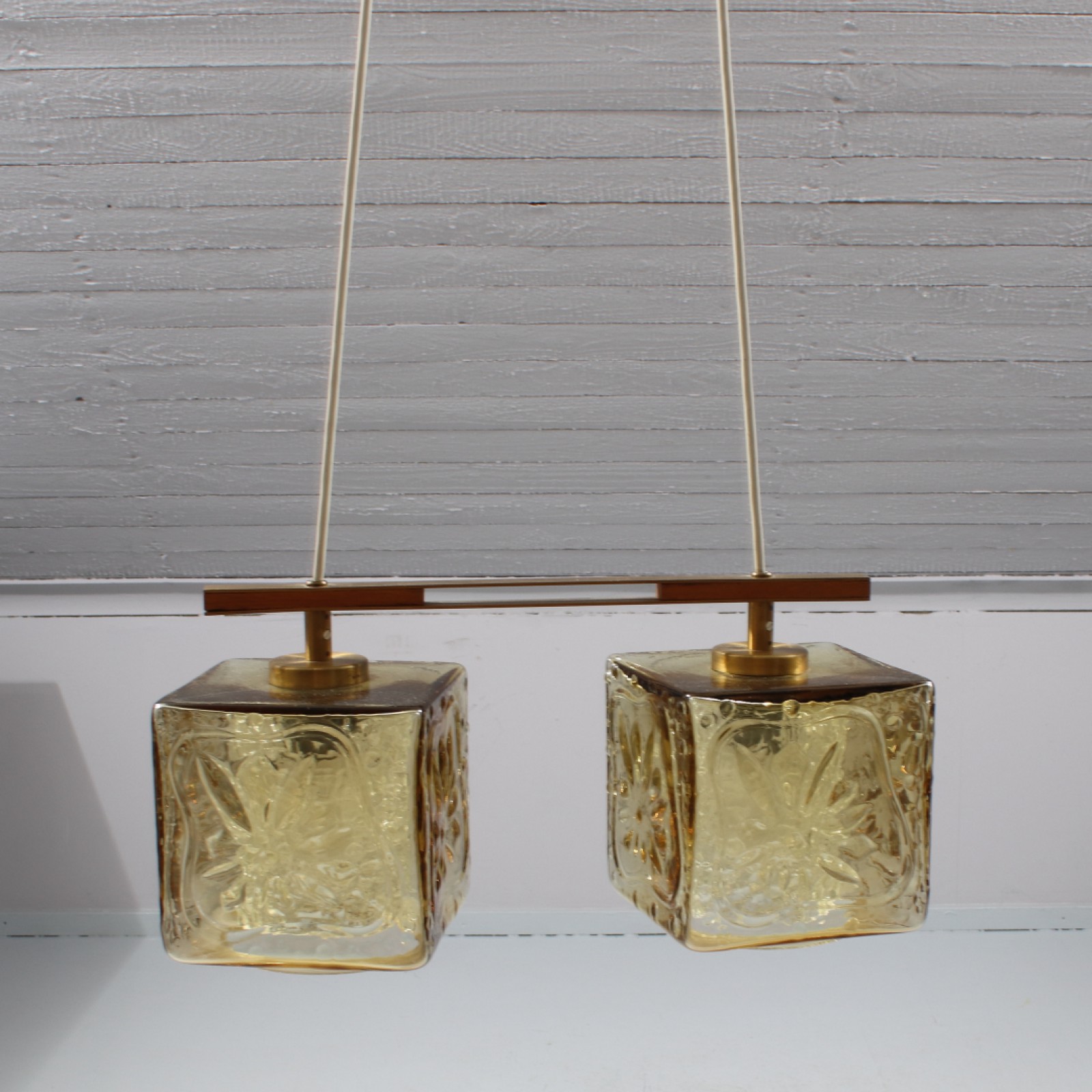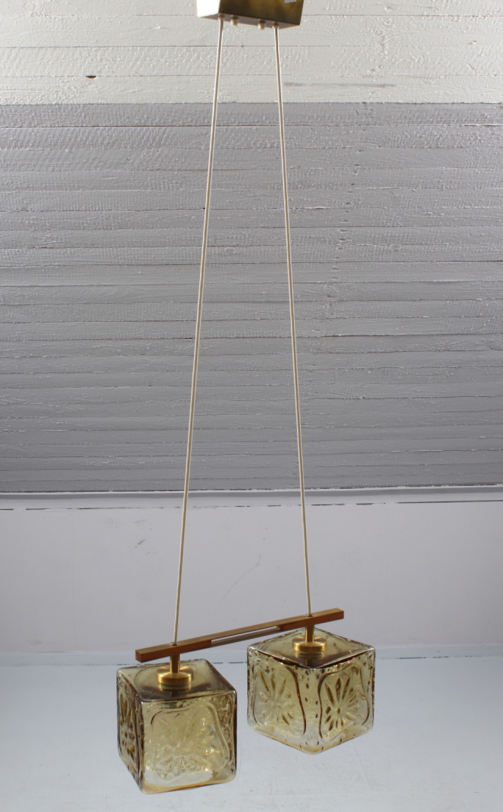 TAKLAMPA Stomme i mässing och teak, skärmar i glas, 1960,70-tal, höjd utan sladd 22 cm, bredd 42 cm, djup 16 cm. (vån1) Avslutas 2026-01-25 18:15:00