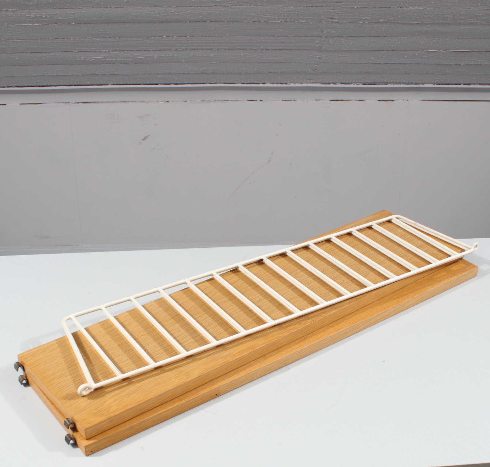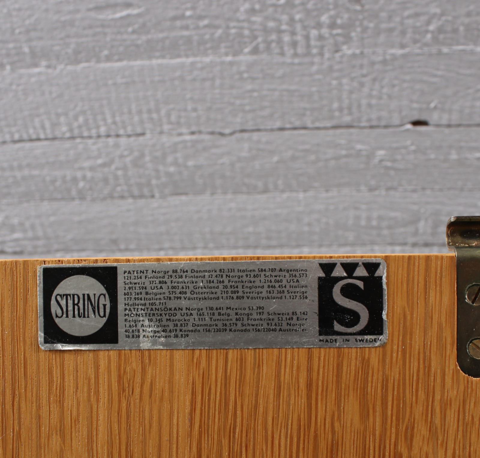 NILS & KAJSA STRINNING "STRING" BOKHYLLA 4 delar, 2st gavlar i plastad metall, 2st hyllplan fanerade med lövträ, 1960-tal, mindre åldersrelaterat slitage, H.75, B.78, Dj.20 cm. (vån3) Avslutas 2026-01-25 18:03:00