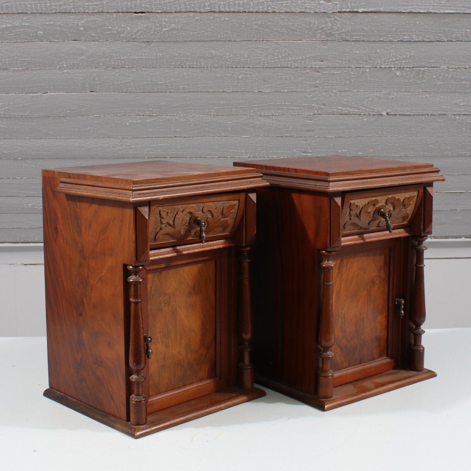 MINDRE SKÅP FRÅN SPEGELUPPSATS 2 stycken (1 par), små sidoskåp från byrå med spegeluppsats, 1900-talets första del, H.30, B.22, Dj.21 cm. (vån3) Avslutas 2026-02-08 18:12:00