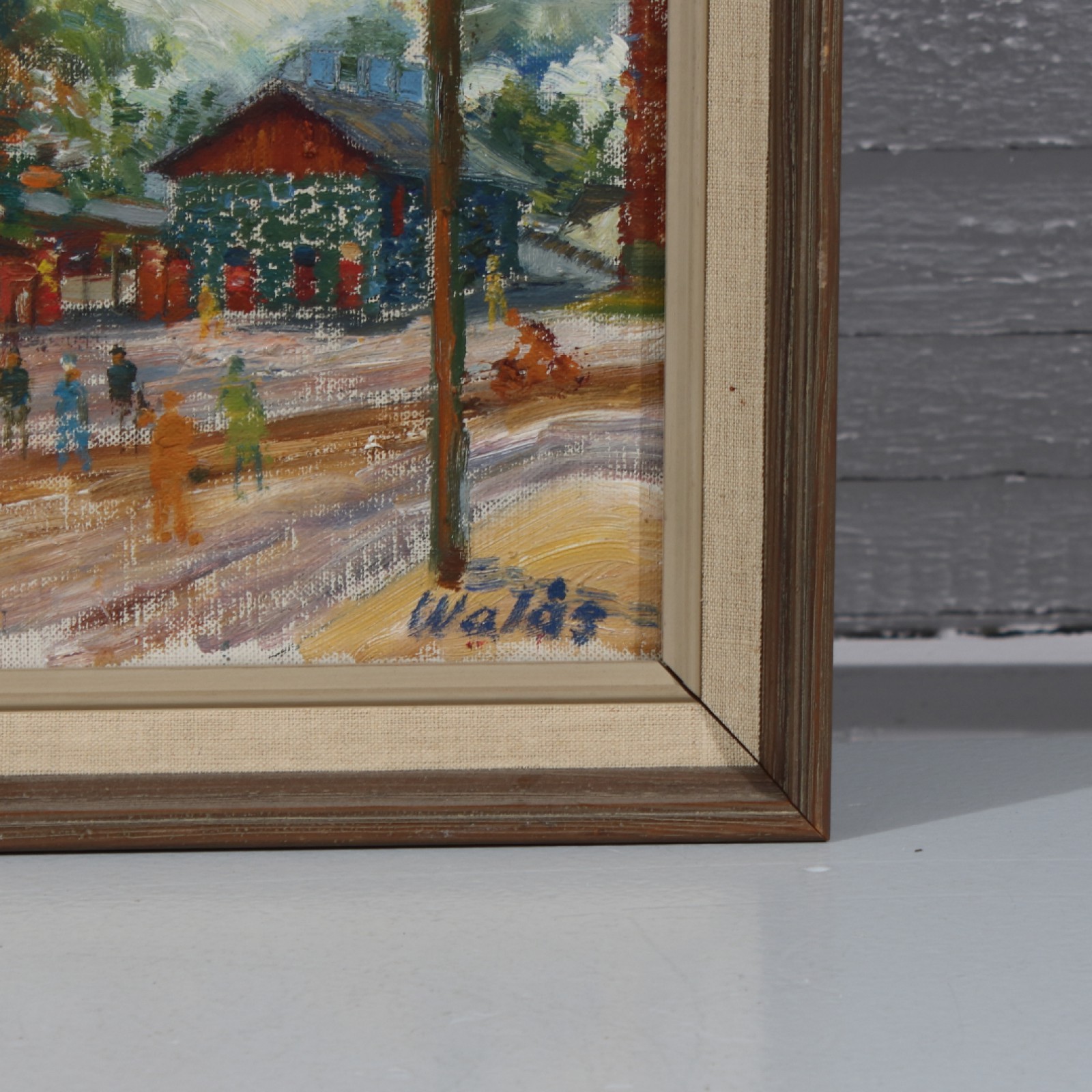 HERBERT WALÅS Olja på duk, "Brukstorget, Bofors", ram 28x38 cm, bild 21x31 cm. (vån3) Avslutas 2026-02-08 18:10:00