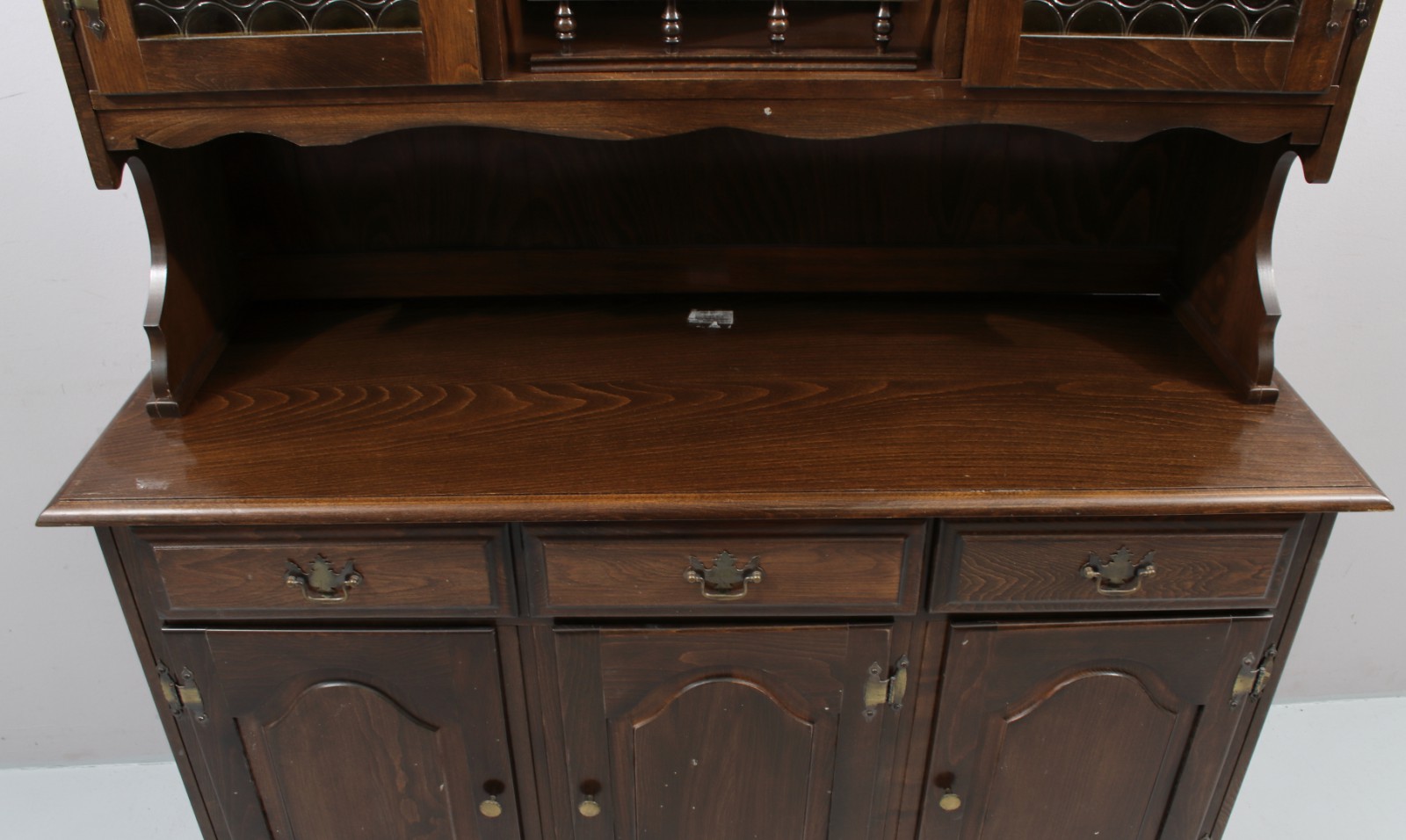 SKÄNK MED VITRINÖVERDEL 1970,80-tal, 2-delat, åldersrelaterat slitage, skavmärken, H.175, B.131, Dj.45 cm. (vån1) Avslutas 2026-02-08 18:00:00