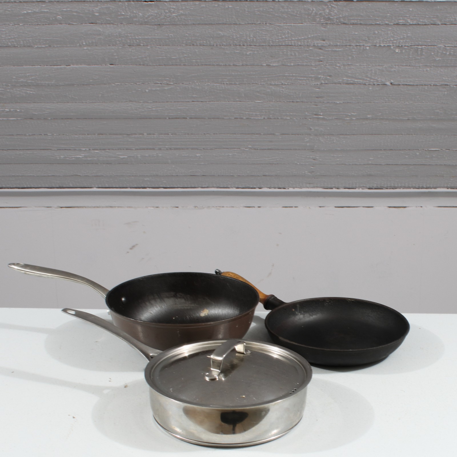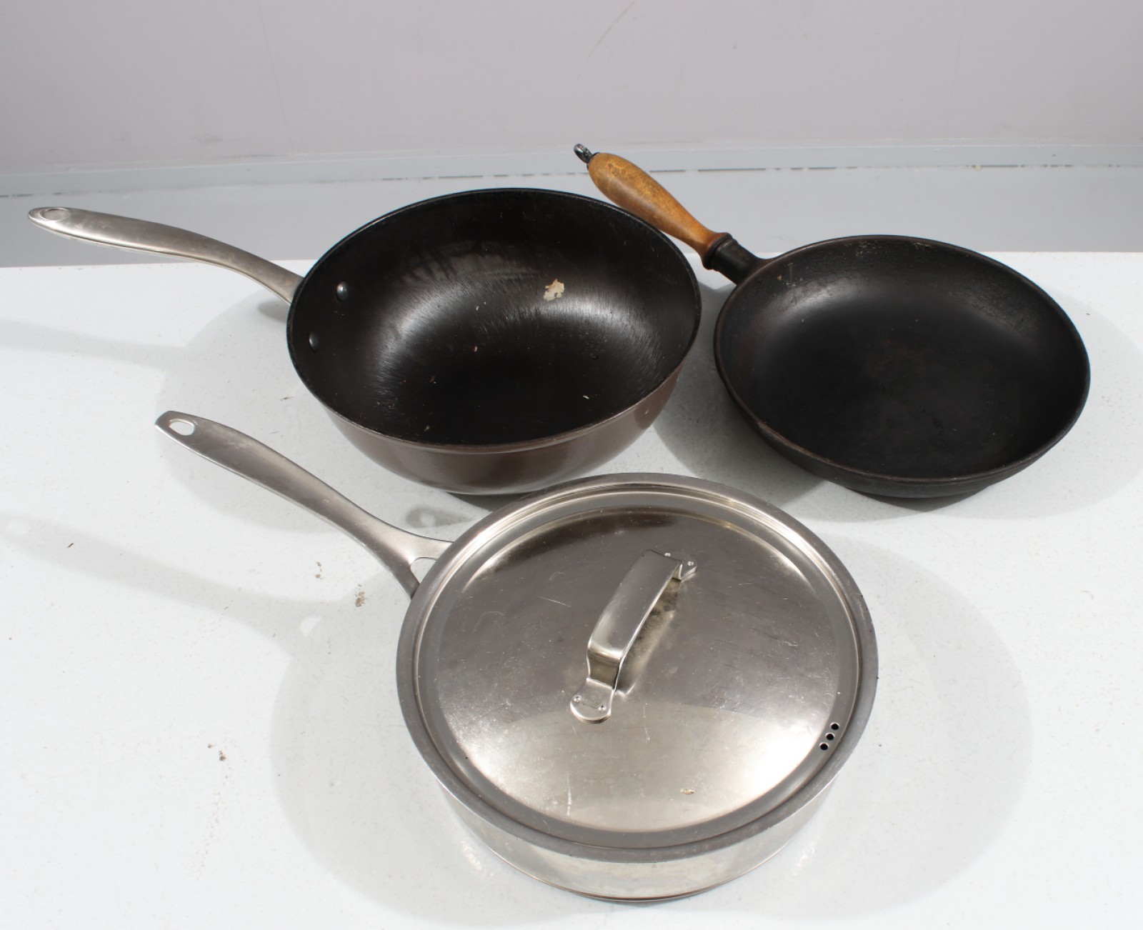 HACKMAN "TRAKTÖRPANNA MED LOCK" M.M 3 delar, 1st traktörpanna med lock i rostfritt, 1st st stekpanna i gjutjärn samt 1st wookpanna. (vån3) Avslutas 2026-03-22 18:02:00